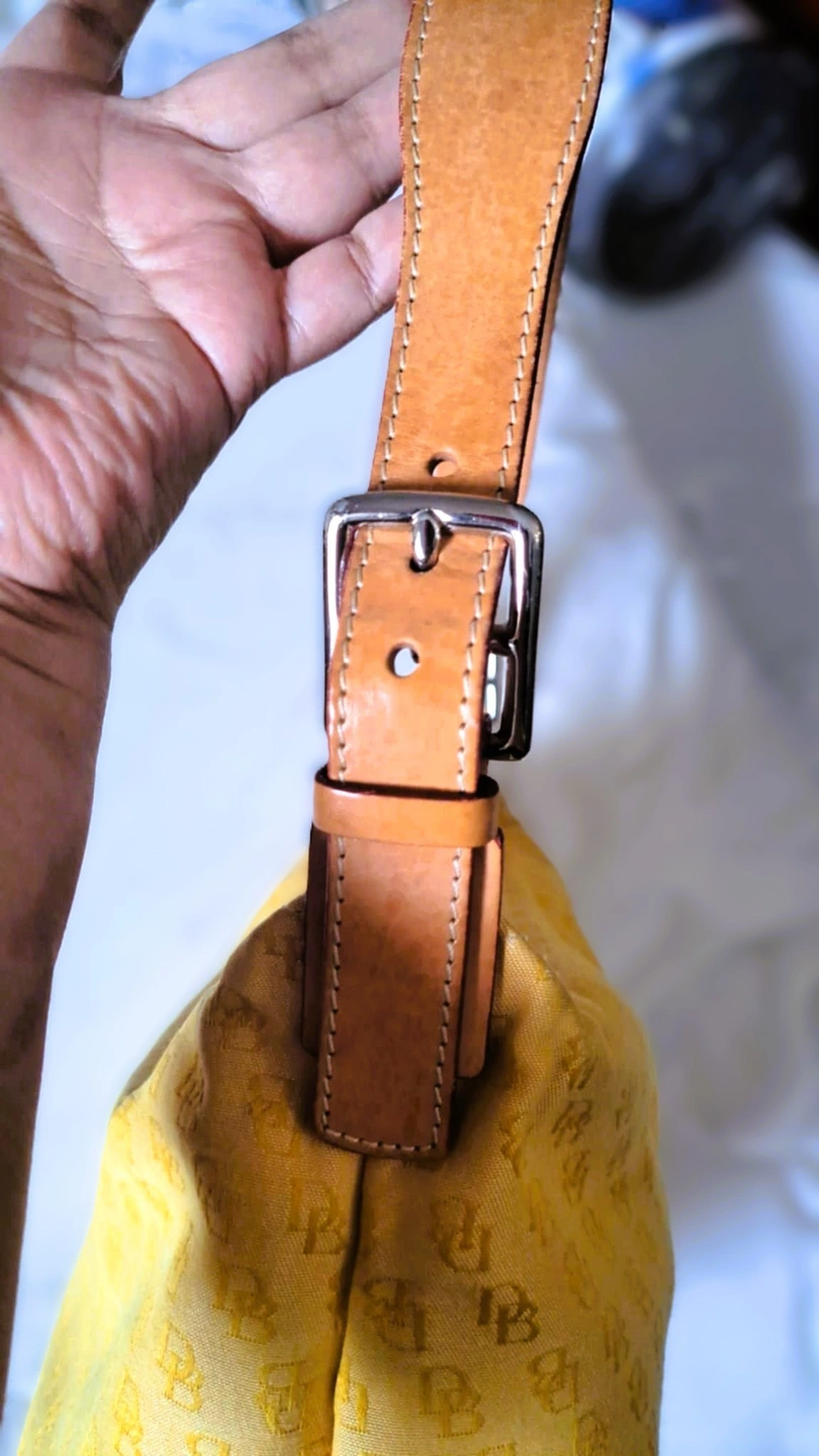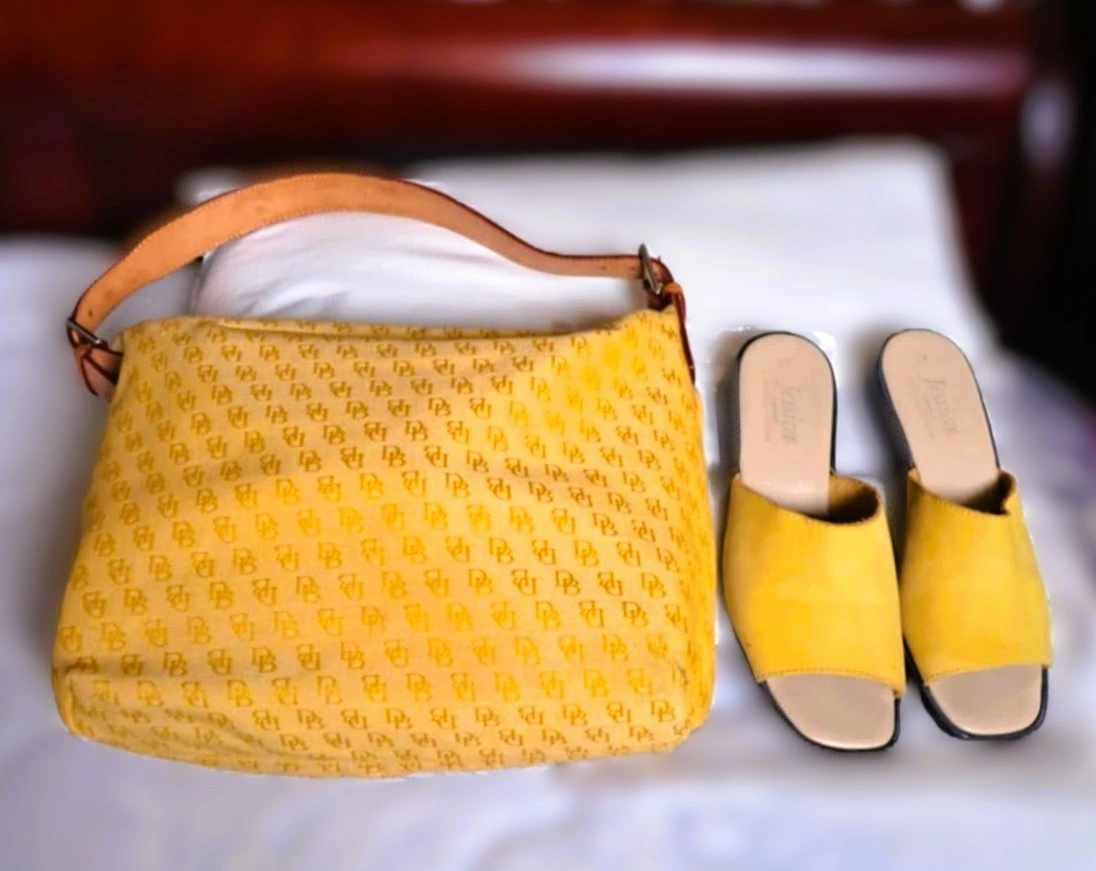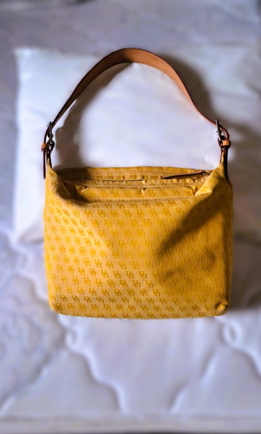 Original price for the bundle $350. Turn heads with this perfectly coordinated "Sunflower Yellow" bundle! This authentic brand set features a classic Dooney & Bourke Signature premium quality canvas hobo and matching Italian Made Jessica genuine leather slides—a must-have for vintage lovers and Y2K fashion enthusiasts.