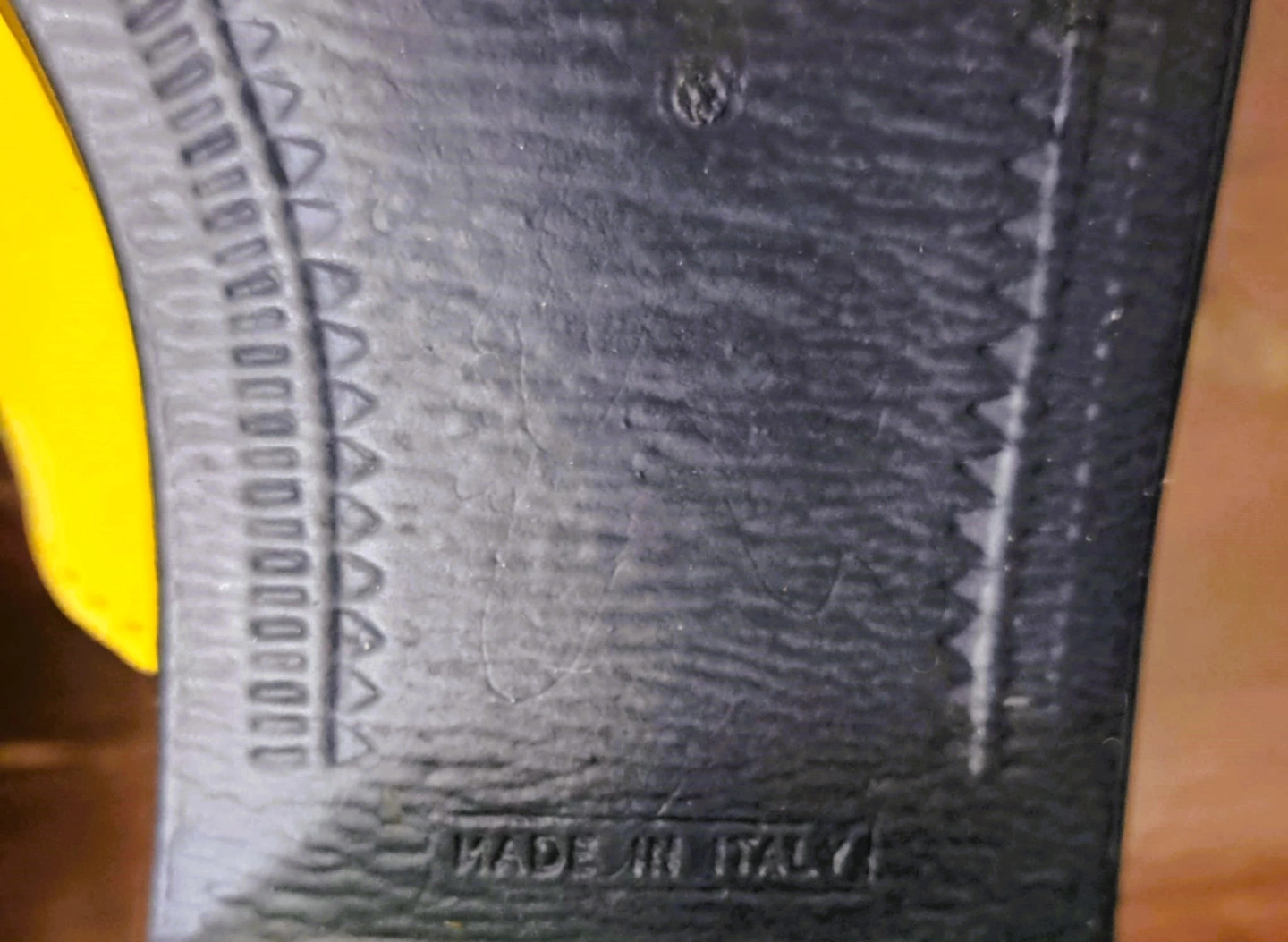 Material: Premium vibrant yellow genuine leather upper with a raw-edge finish.