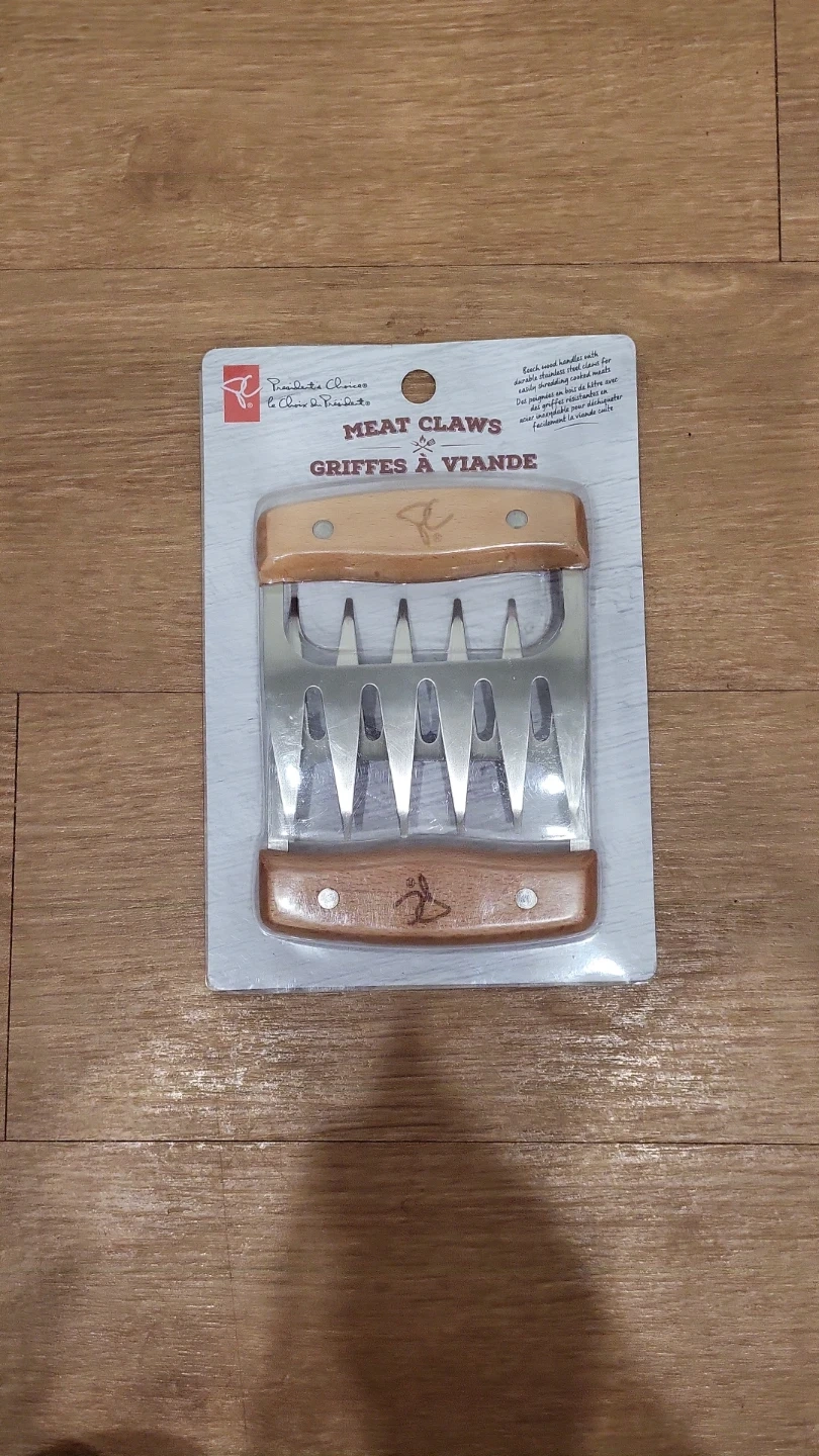 These meat claws have beach wood handles and durable stainless steel claws for easily shredding cooked meats. They're perfect for BBQs and preparing pulled pork.