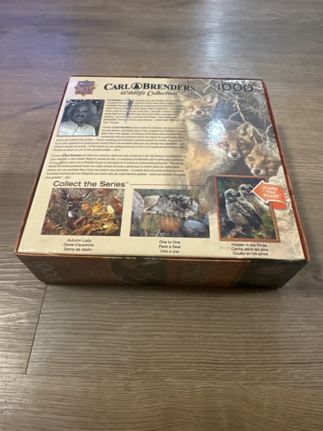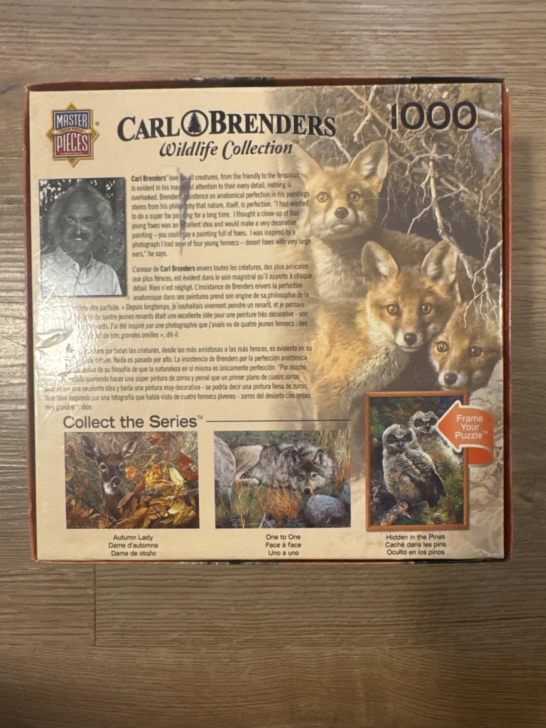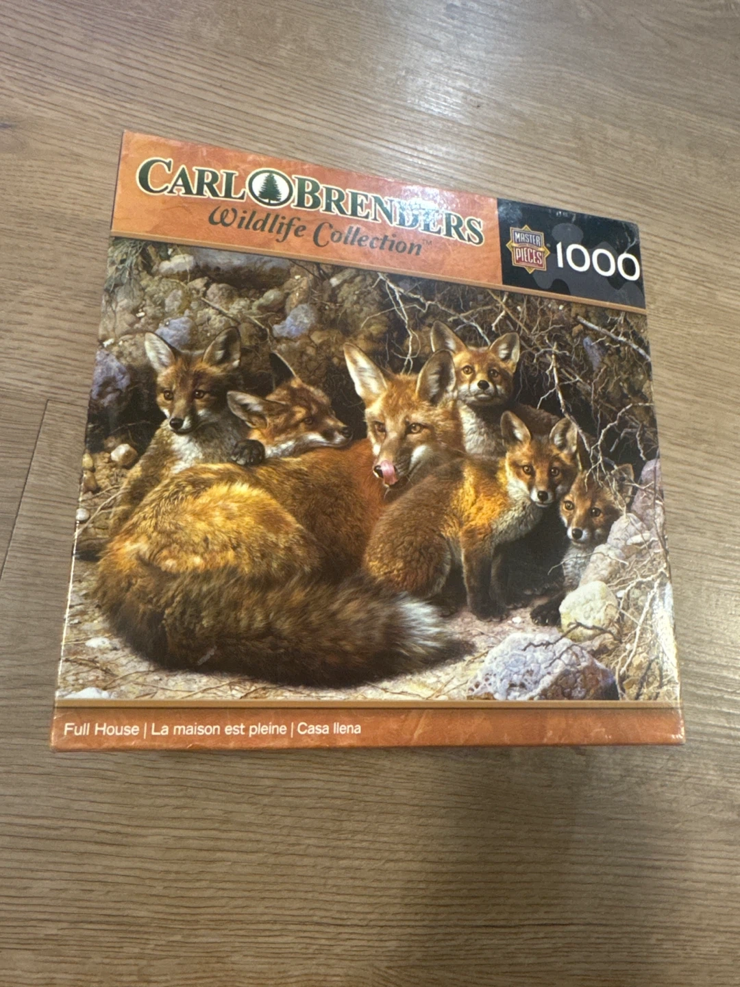 CARLO BRENDERS Wildlife Collection 1000 piece jigsaw puzzle. It features the artwork 'Full House' with a family of foxes. This puzzle is great for adults and nature enthusiasts looking for a challenging and rewarding activity.