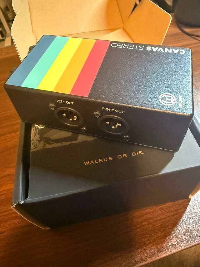 Selling a used Walrus Audio Canvas Stereo, a high-quality stereo line isolator and direct box for your guitar or keyboard setup. This unit is in good condition and provides pristine signal clarity, perfect for studio or stage use. It's a game-changer for eliminating noise and balancing your signal! Key features include stereo isolation, direct box functionality, high headroom, and a compact design. Used for about 6 months on a studio board. Great condition with the original box. If the ad is up, it's still available.
