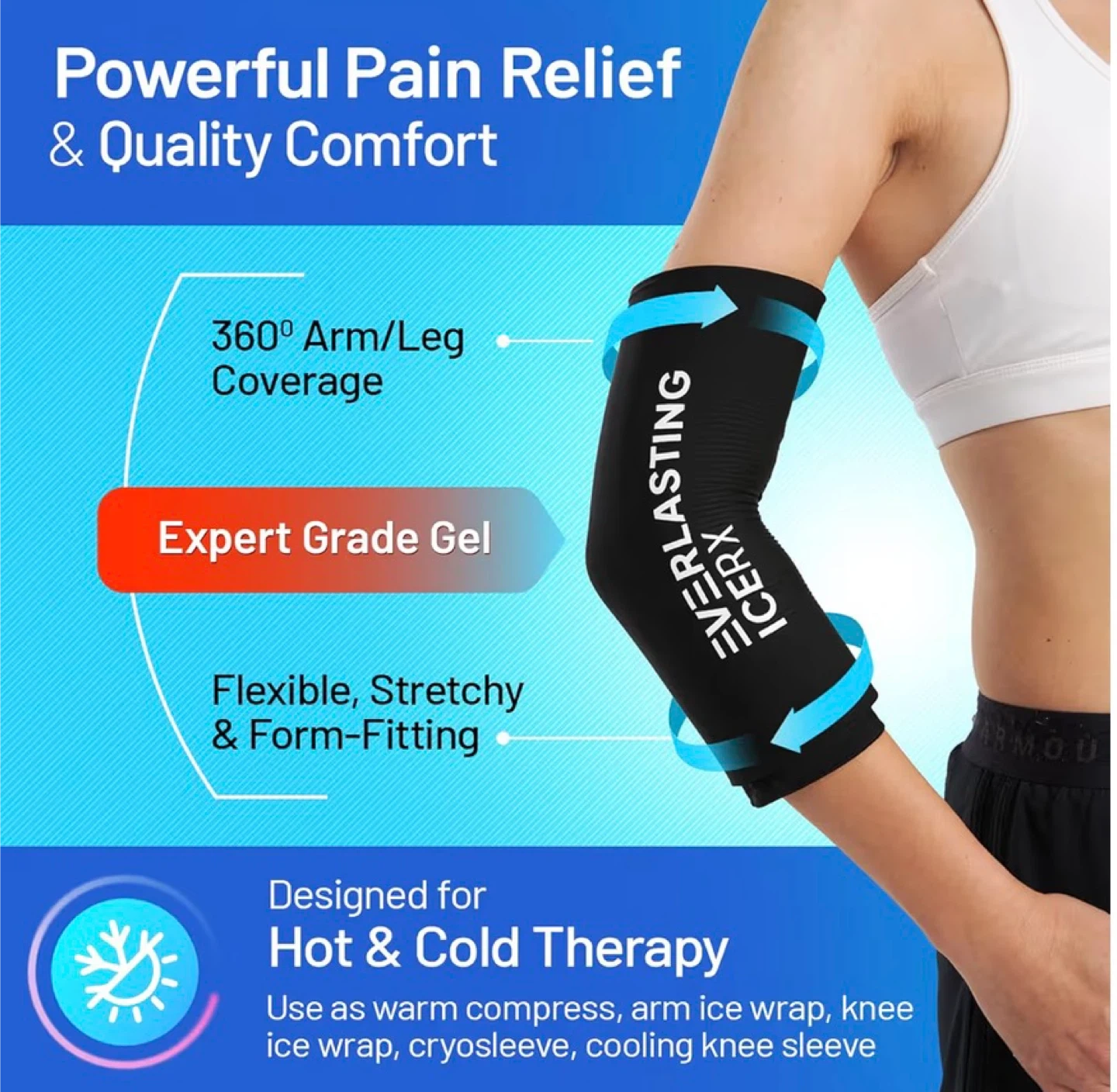 This Everlast sleeve provides all-day relief for your elbow and arm. It's designed for hot and cold therapy to help you recover from injuries. The compression sleeve is flexible, stretchy, and form-fitting for 360-degree coverage. This is great for those needing support during physical activity or recovery!