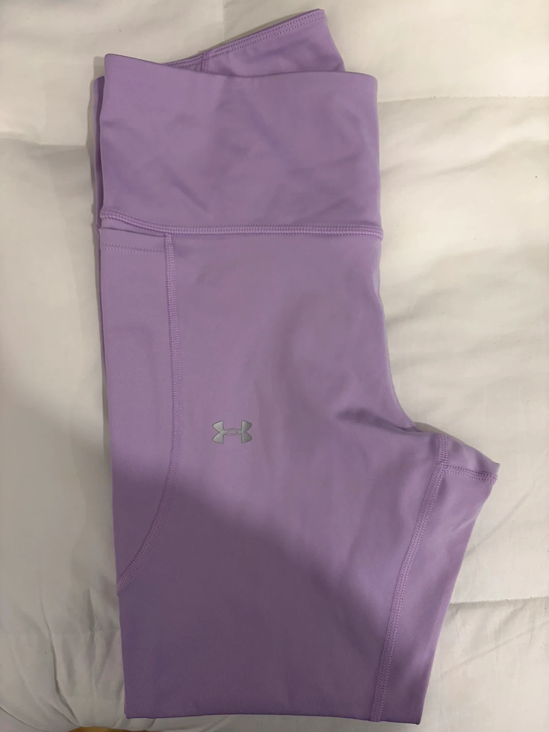 These Under Armour athletic leggings are a lovely shade of purple. They're a size medium (MD/M). Made in Vietnam.