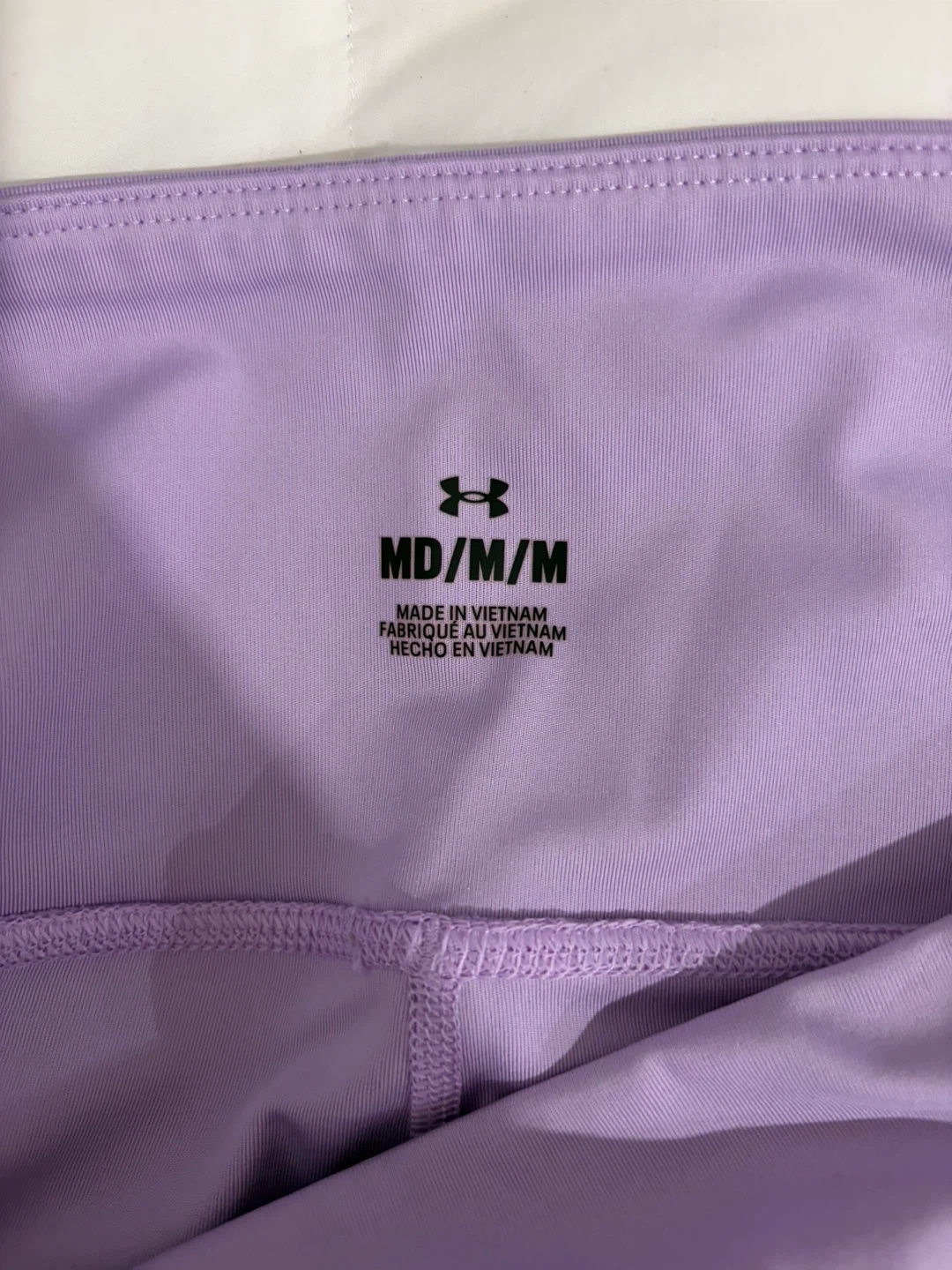 These Under Armour athletic leggings are a lovely shade of purple. They're a size medium (MD/M). Made in Vietnam.
