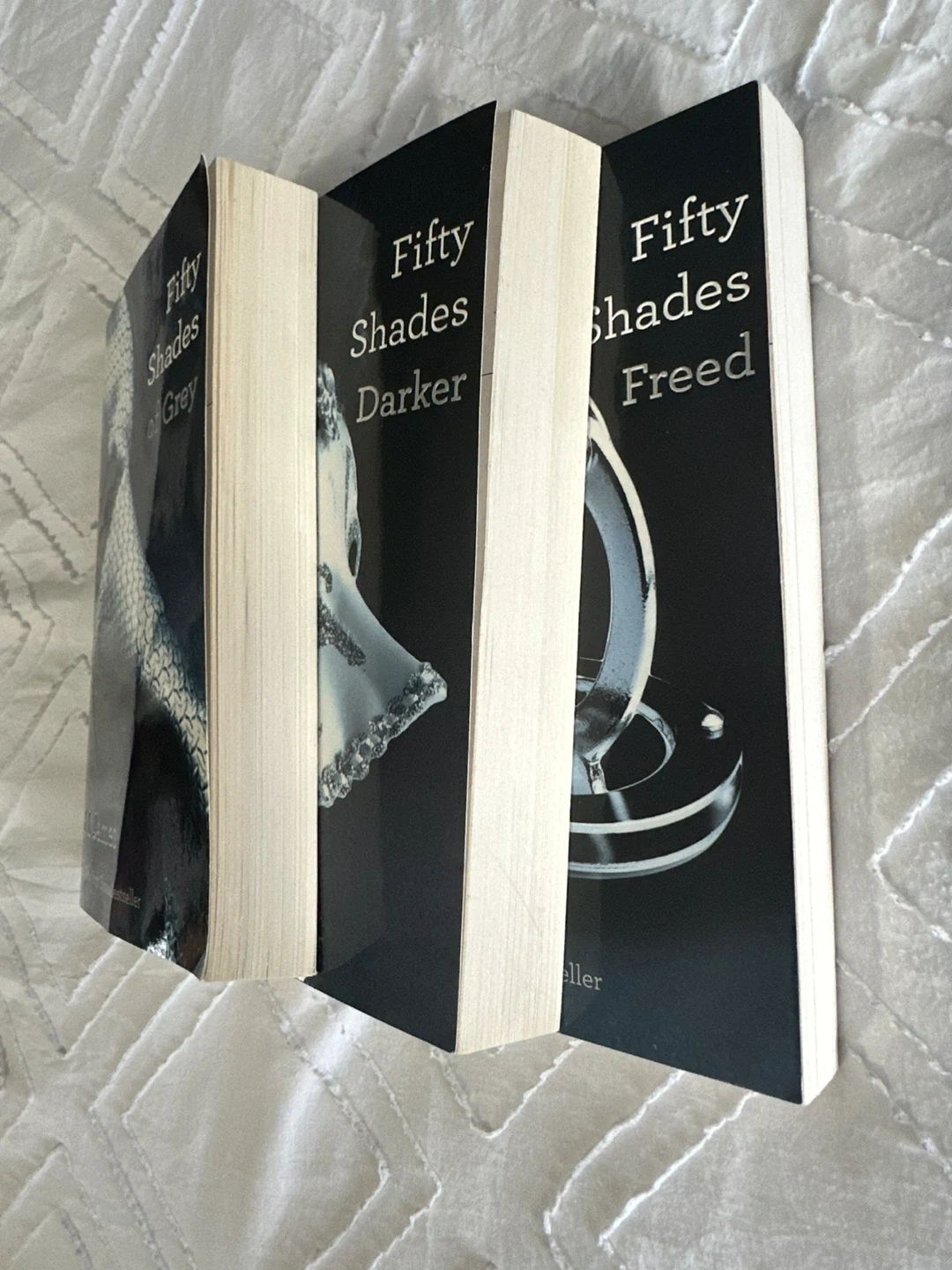 This set includes "Fifty Shades of Grey", "Fifty Shades Darker", and "Fifty Shades Freed". These are #1 New York Times Bestsellers. Perfect for readers who enjoy erotic romance novels.Like new! In excellent condition.