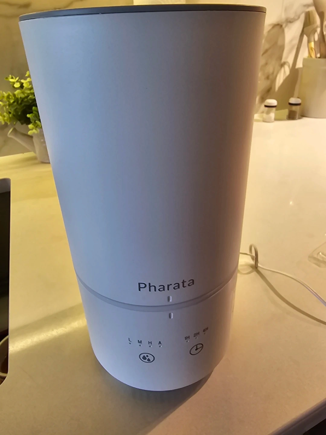 This is a Pharata humidifier. It has multiple mist settings and timer options. The large capacity tank makes it convenient for overnight use.
