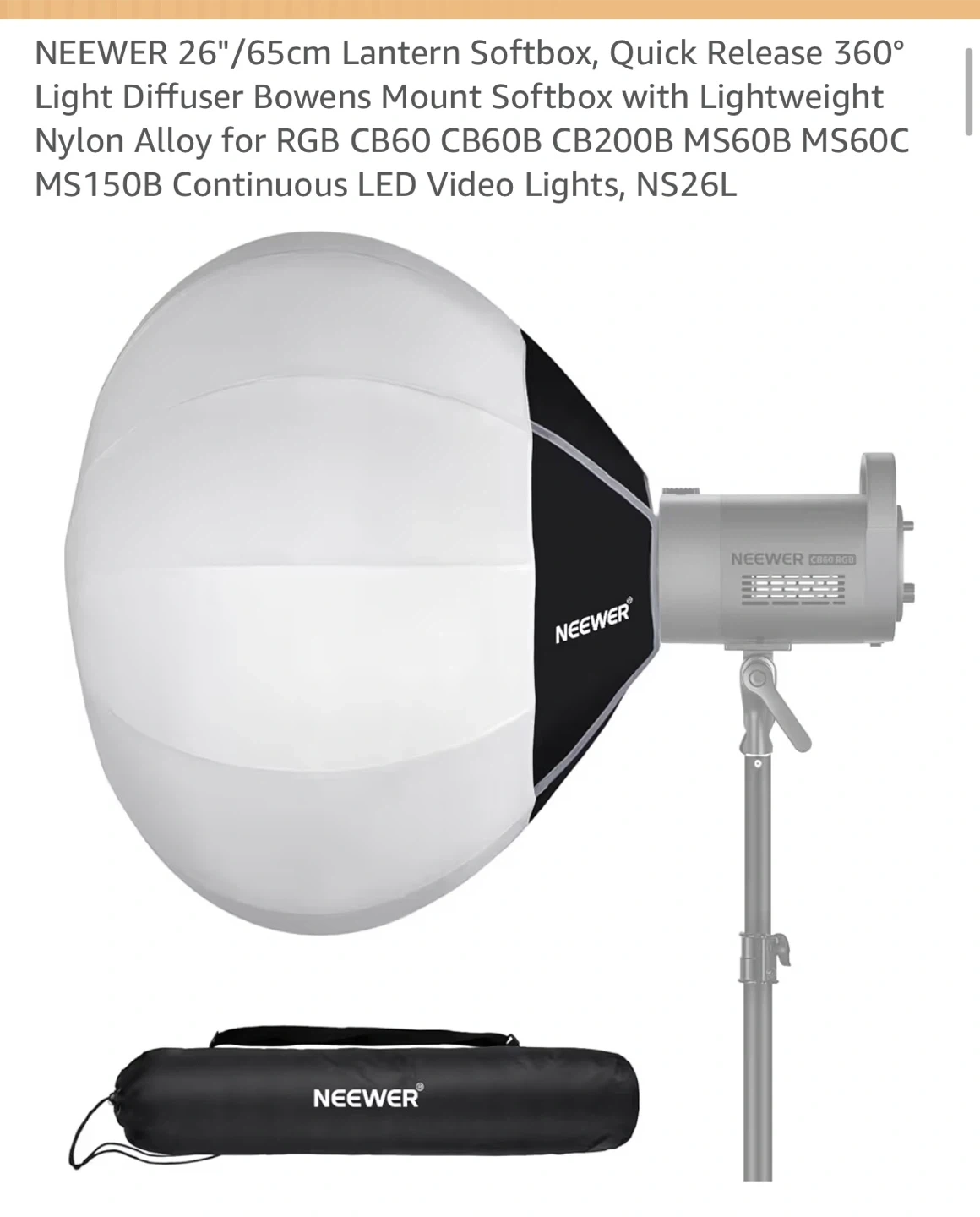 2. NEEWER 26”/65cm Quick-Release Lantern Softbox