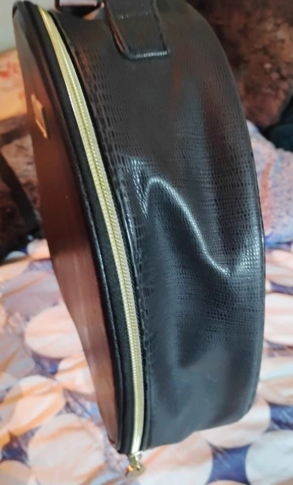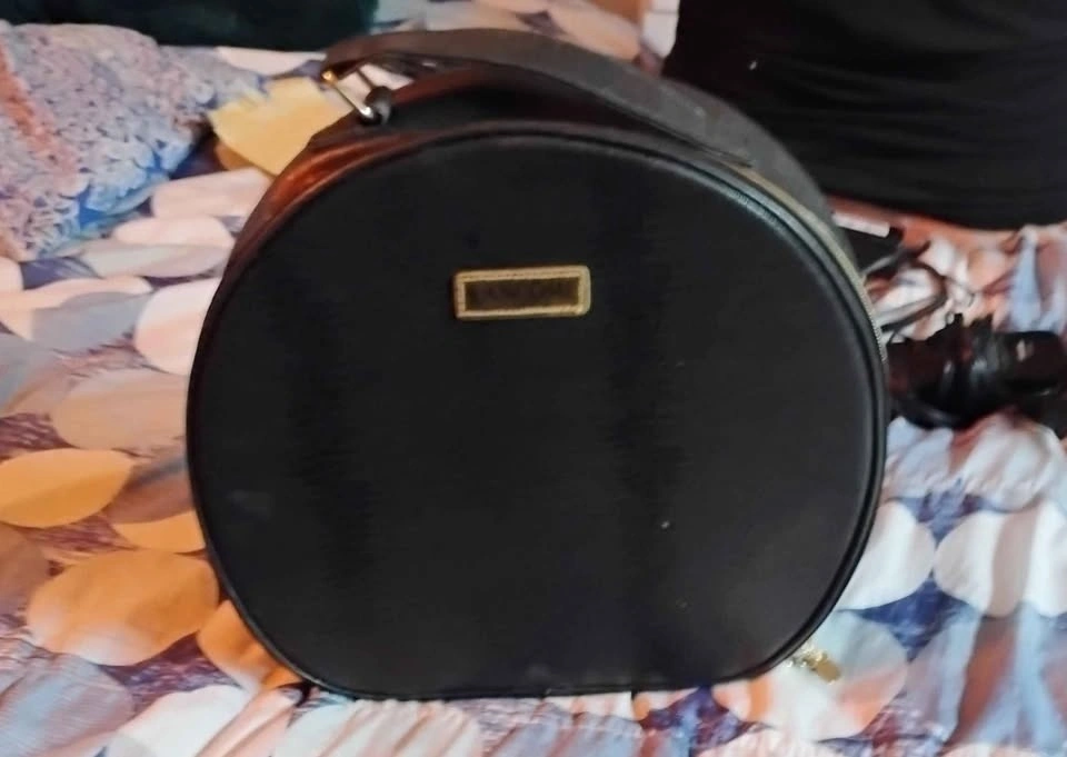 1980's Vintage Lancome Black Round Makeup Case