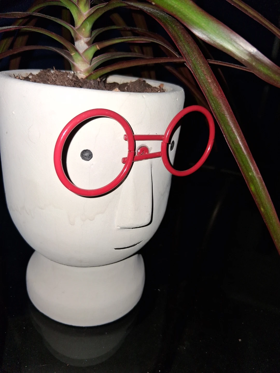 Lovley plant with White Ceramic Face Planter with Red Glasses