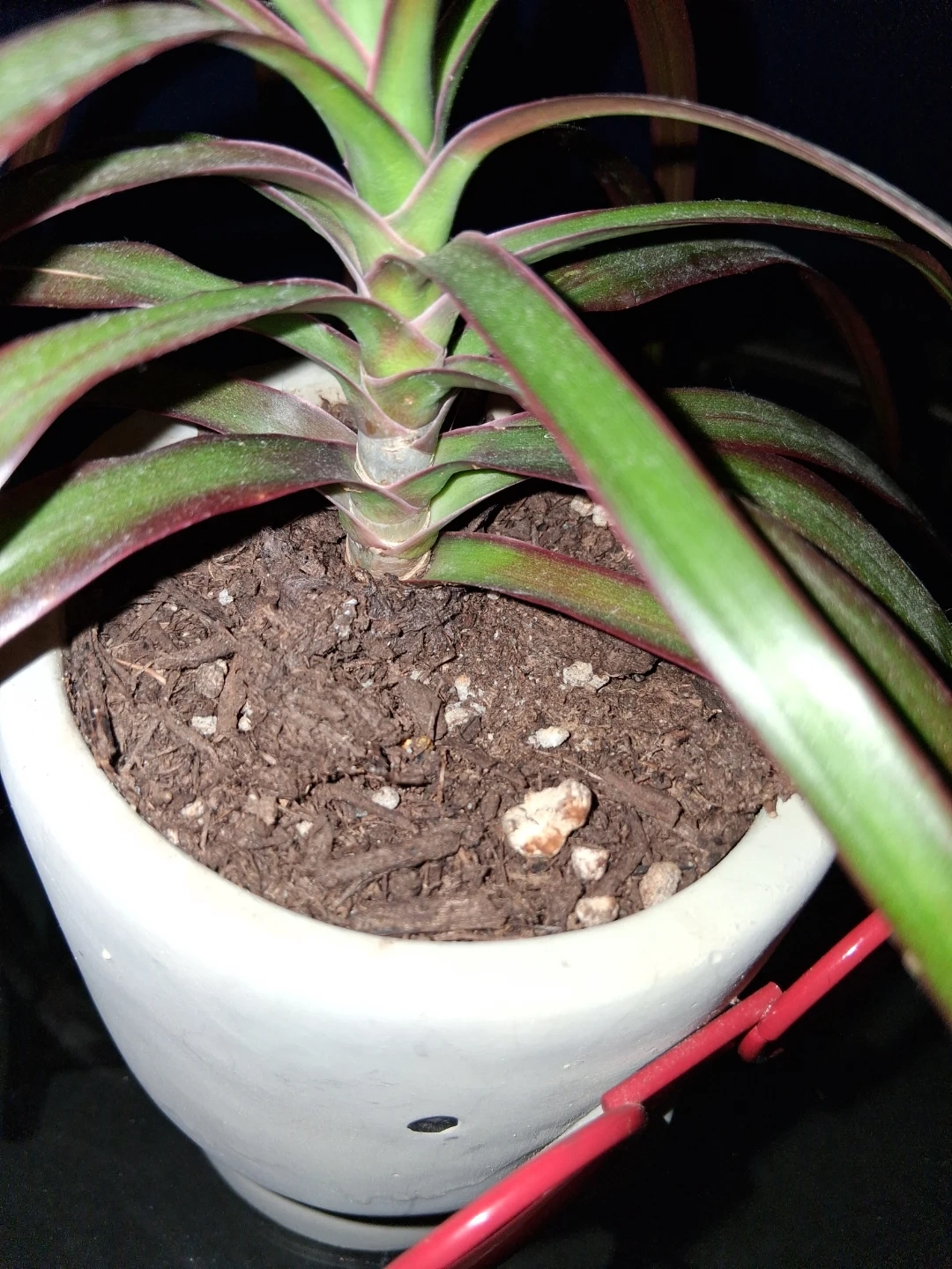 This is a fun white ceramic planter shaped like a face, complete with red glasses! It's a great conversation starter for any plant lover. The planter is made of ceramic and has a smooth finish. Its easy to water once a month even and a few cups of water. Some sunlight. Lives a long time and is a good vibe.