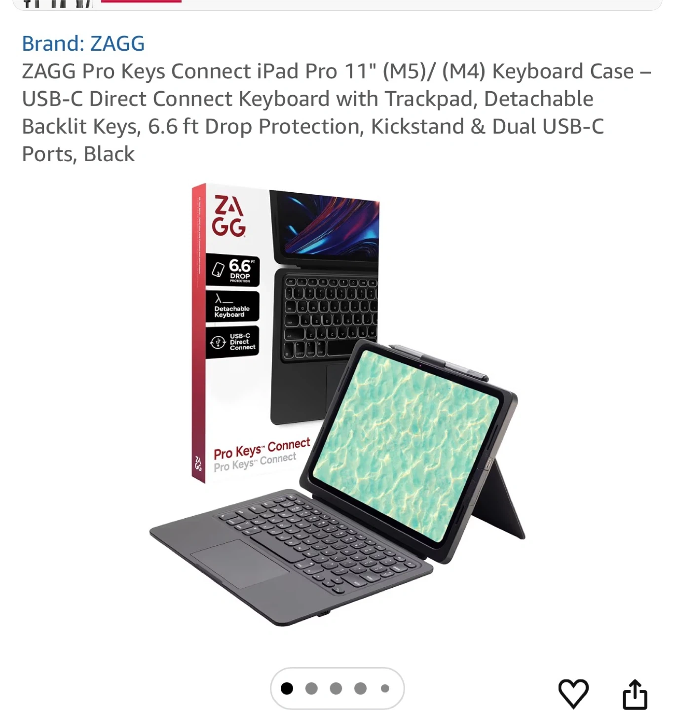 This ZAGG Folio is a wireless keyboard and case combo for an 11-inch iPad Pro. It offers multi-angled viewing and a space for an Apple Pencil with wireless charging. The case features backlit, laptop-style keys and on/off magnets to preserve battery life.