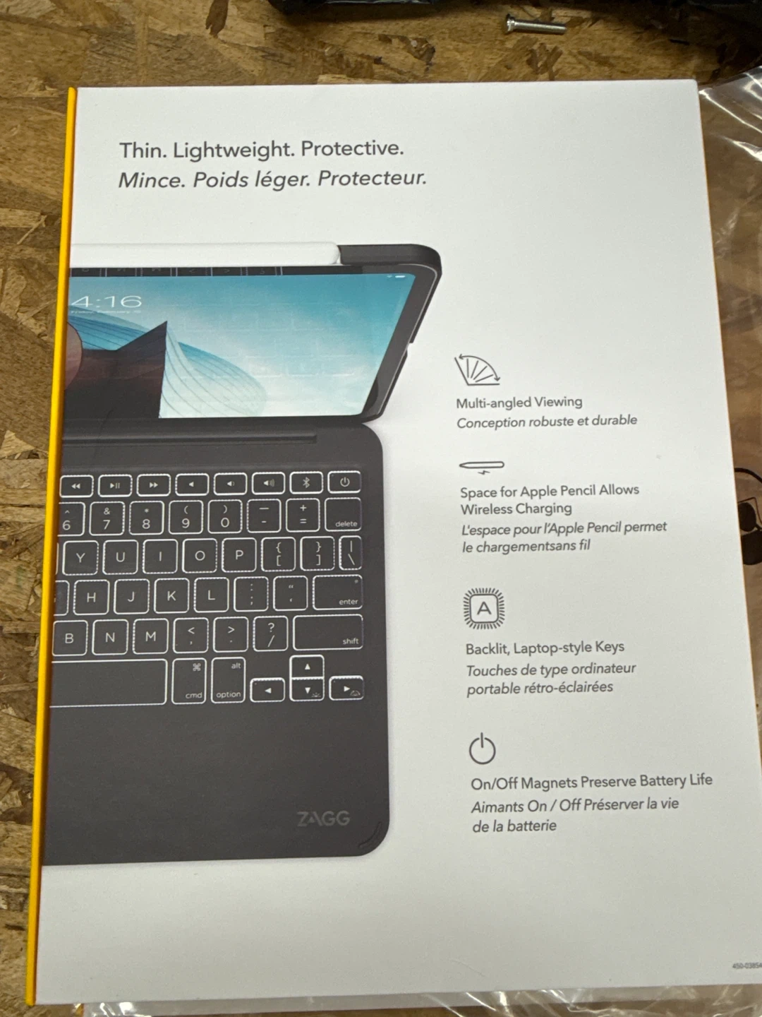 This ZAGG Folio is a wireless keyboard and case combo for an 11-inch iPad Pro. It offers multi-angled viewing and a space for an Apple Pencil with wireless charging. The case features backlit, laptop-style keys and on/off magnets to preserve battery life.