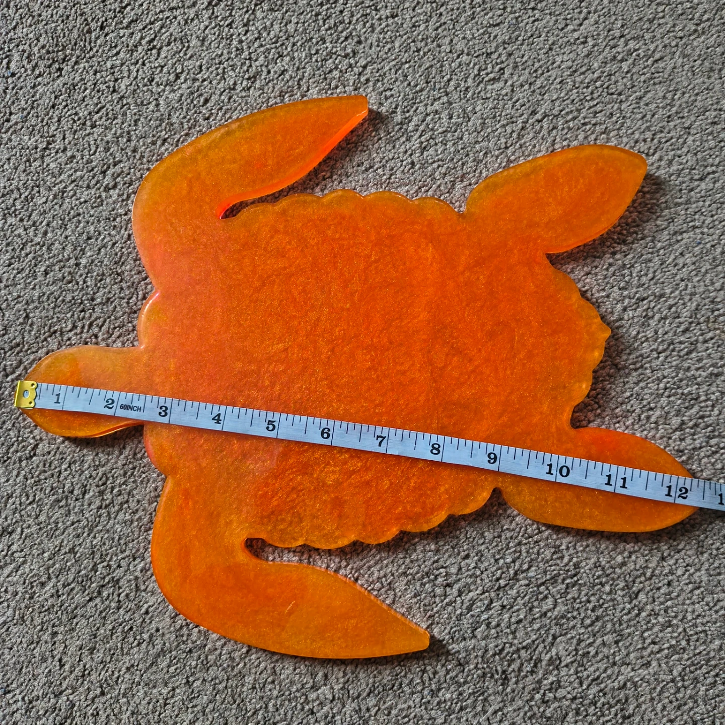 Decorative orange turtle-shaped tray made from resin. It's approximately 12 inches wide. This unique piece adds a splash of colour to any space. Available in several colours!