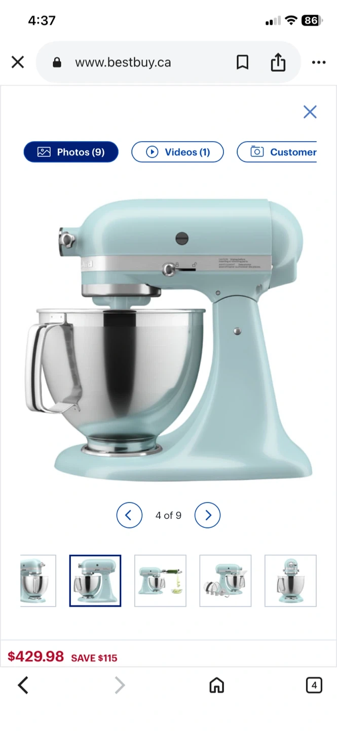 This is a KitchenAid Artisan stand mixer in a lovely ice blue colour. It comes with the standard attachments. It's perfect for all your baking needs!