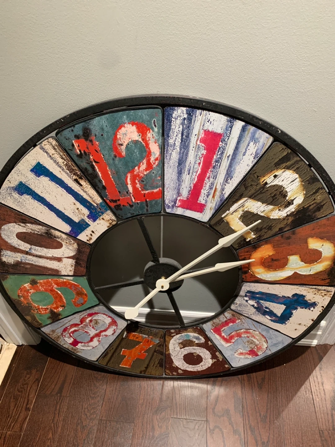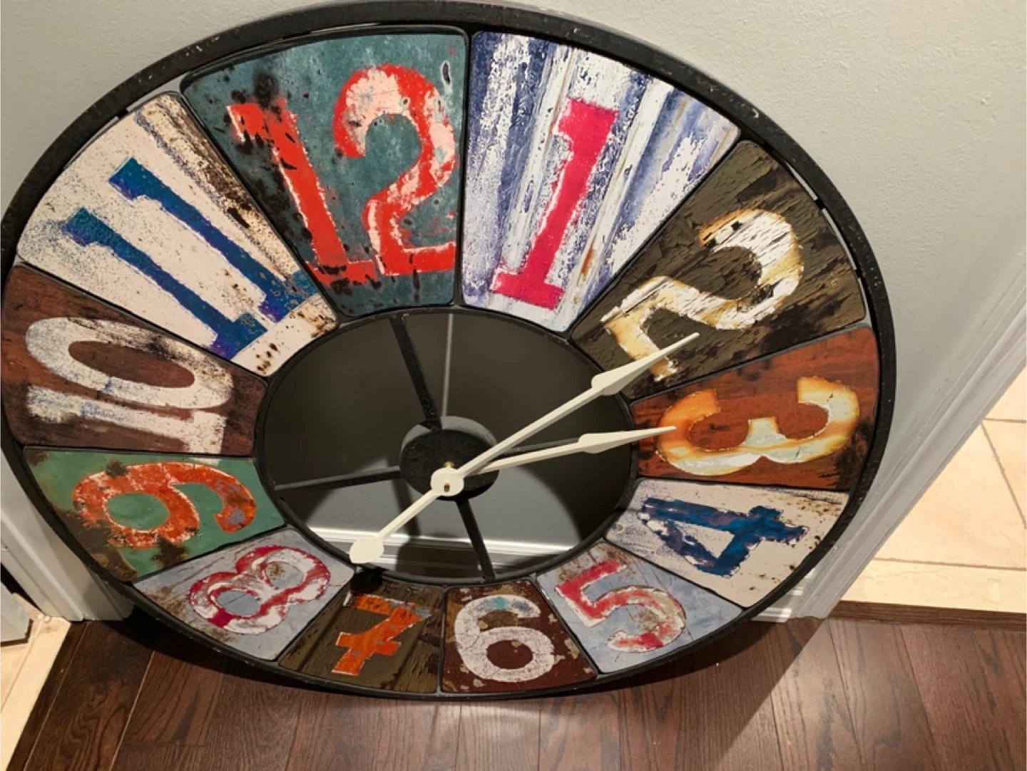 Crafted from solid iron, it brings the perfect mix of rustic charm and colourful whimsy to your décor. Whether it’s for a living room, loft, office, or entryway, this oversized clock fills large wall space beautifully and adds serious character.