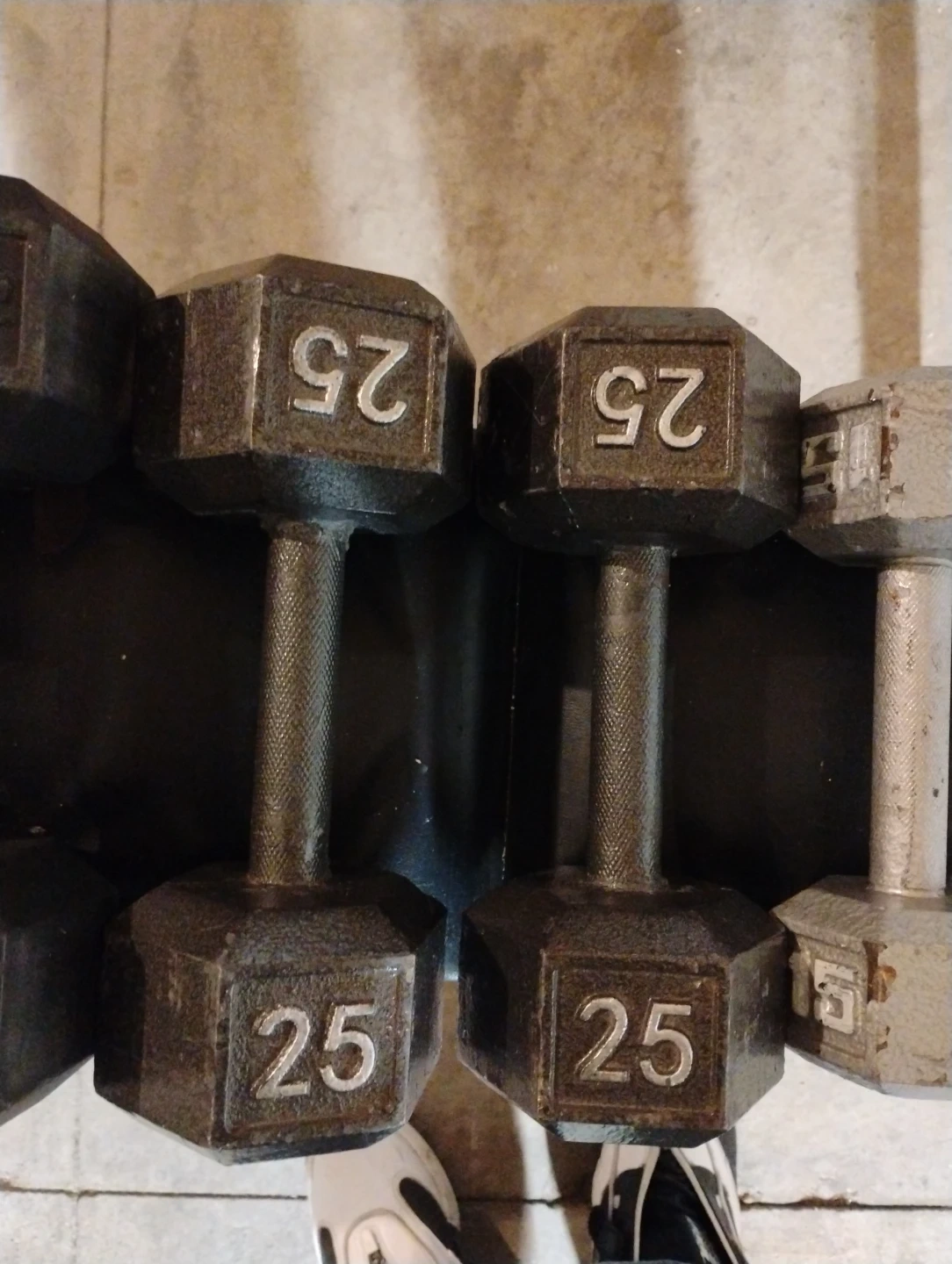 Selling a pair of 25 lb dumbbells! They're in good condition and ready for your home gym.