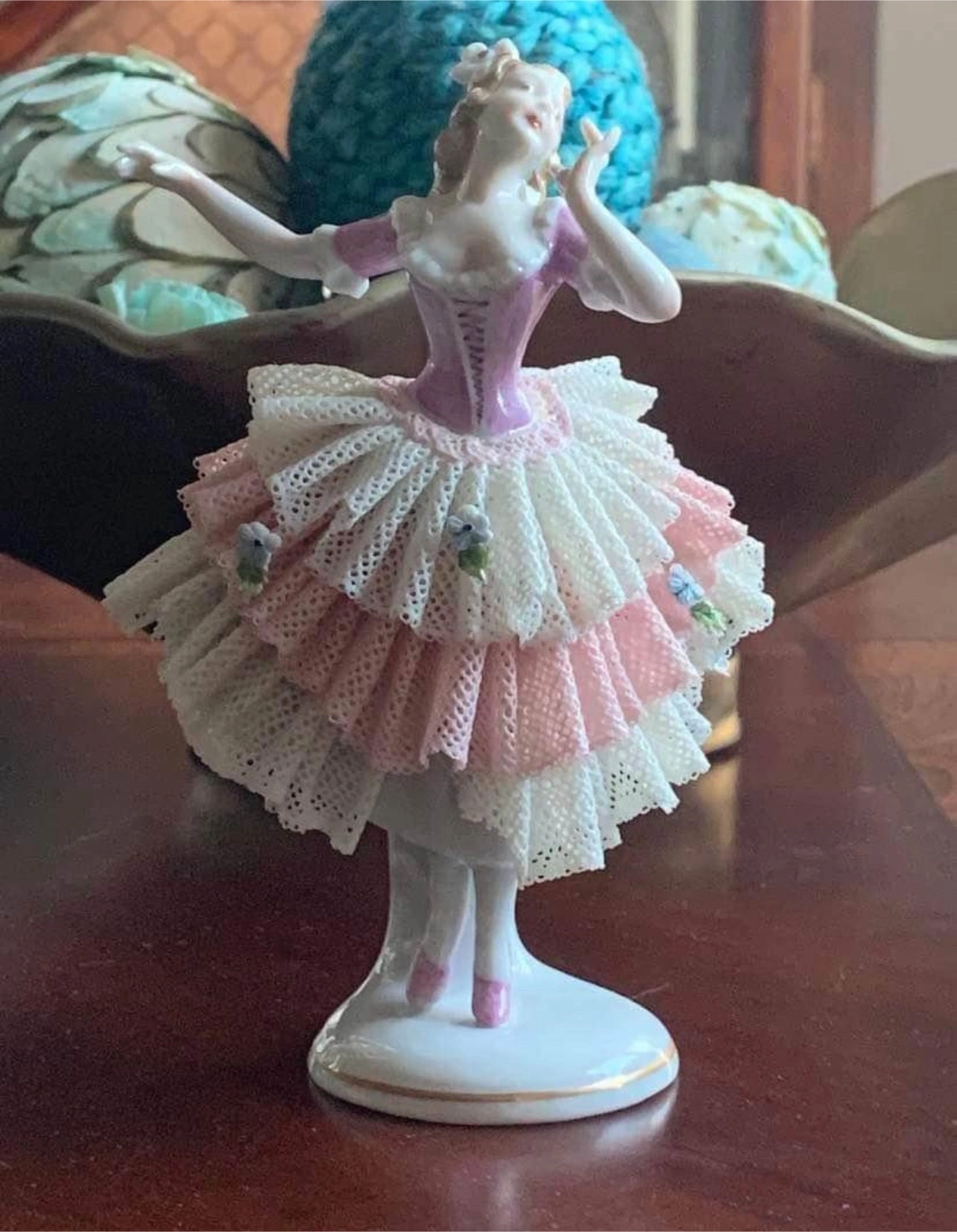 Antique German Dresden Lace Porcelain Ballerina Dancer Figurine