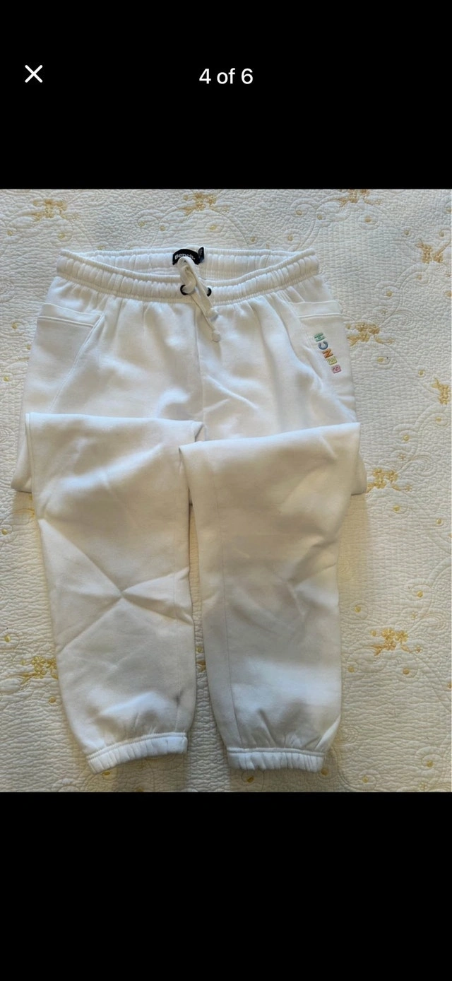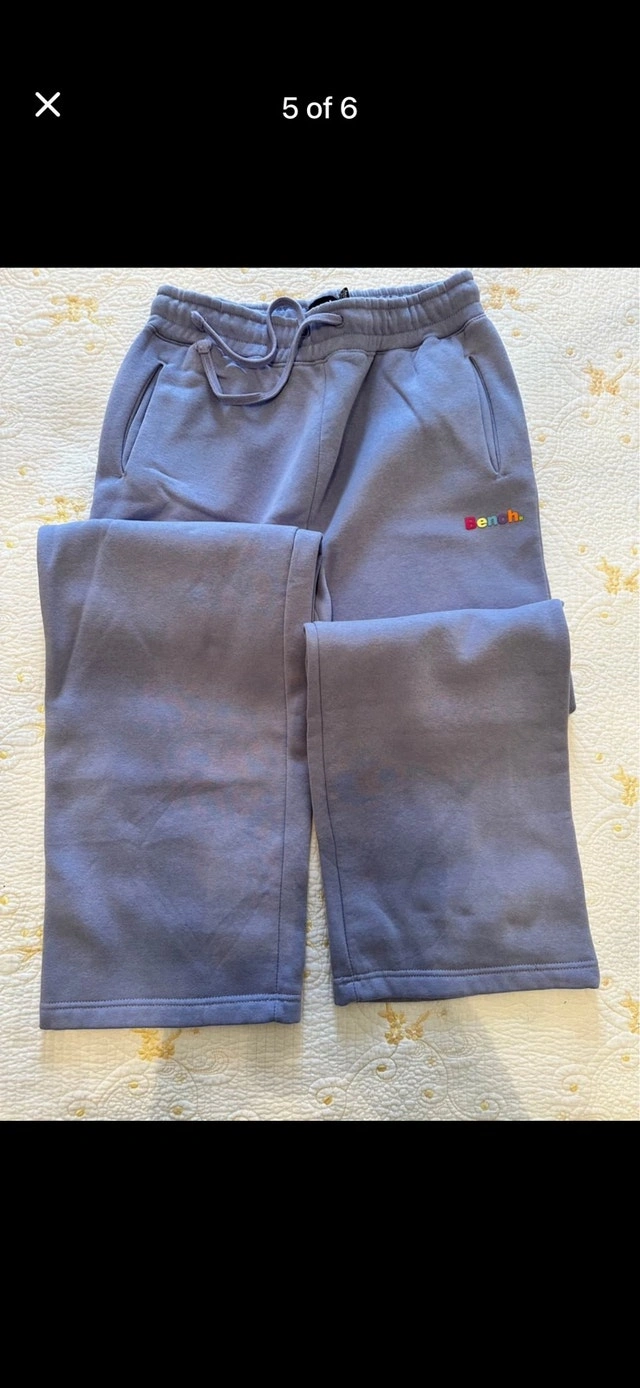 New BENCH fleece lined hoodies, size L, $30 each. Features Manaia Chest Logo Hoodie with cowlneck, flat drawstring, and large multicolor logo embroidery. Ribbed cuffs with thumbholes, drop shoulders, oversized silhouette. Also available: NEW PUMA Hoodie, size L, Rose/Mauve, not fleece lined, $30. Fleece lined joggers, size M (10-12), elasticized drawstring waistband, side pockets, small multicolored logo. $30 each. Cash accepted. Curbside pickup available.