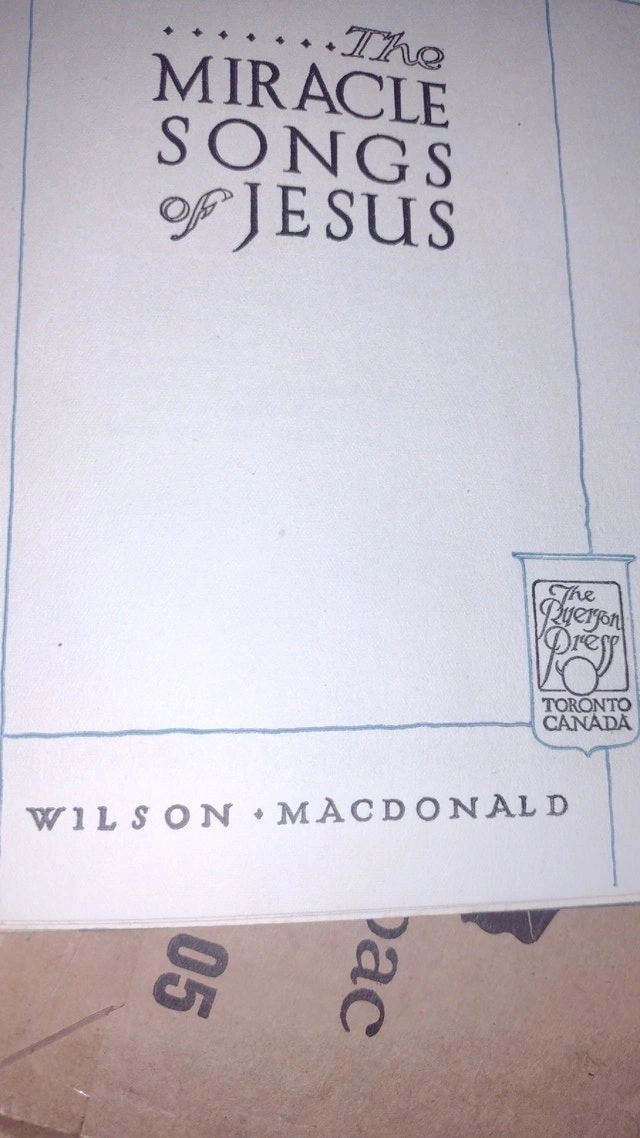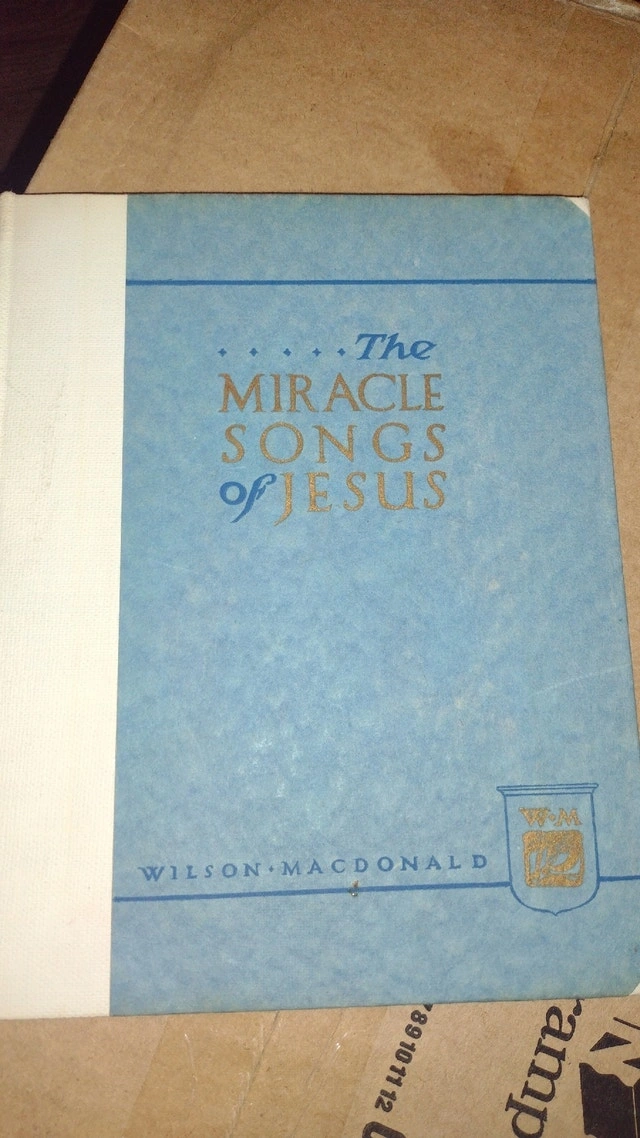 A vintage book titled "The Miracle Songs of Jesus" by Wilson MacDonald. Condition: Used - Good. Cash accepted. Owner selling. Curbside pickup available.