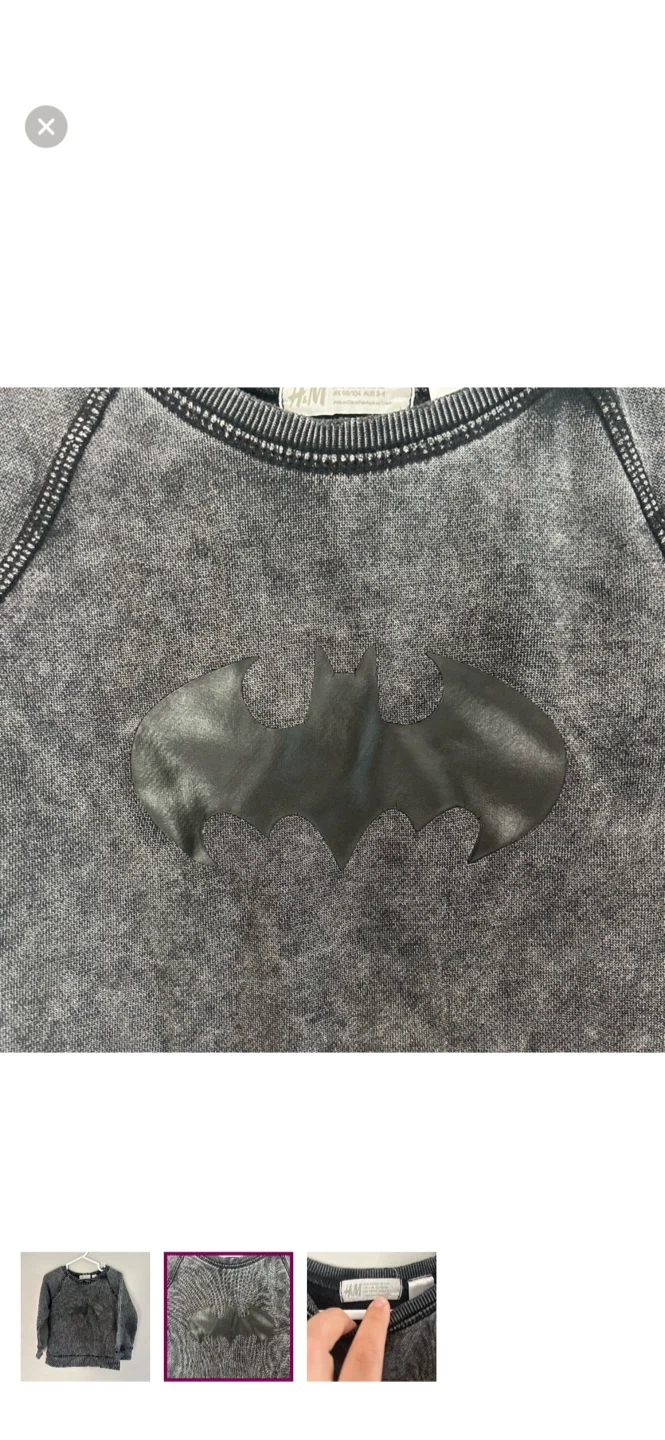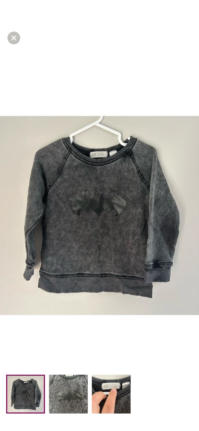 H&M brand. Pullover sweater. Black acid wash looking with black Batman graphic. Size 2/4t. Brand new condition