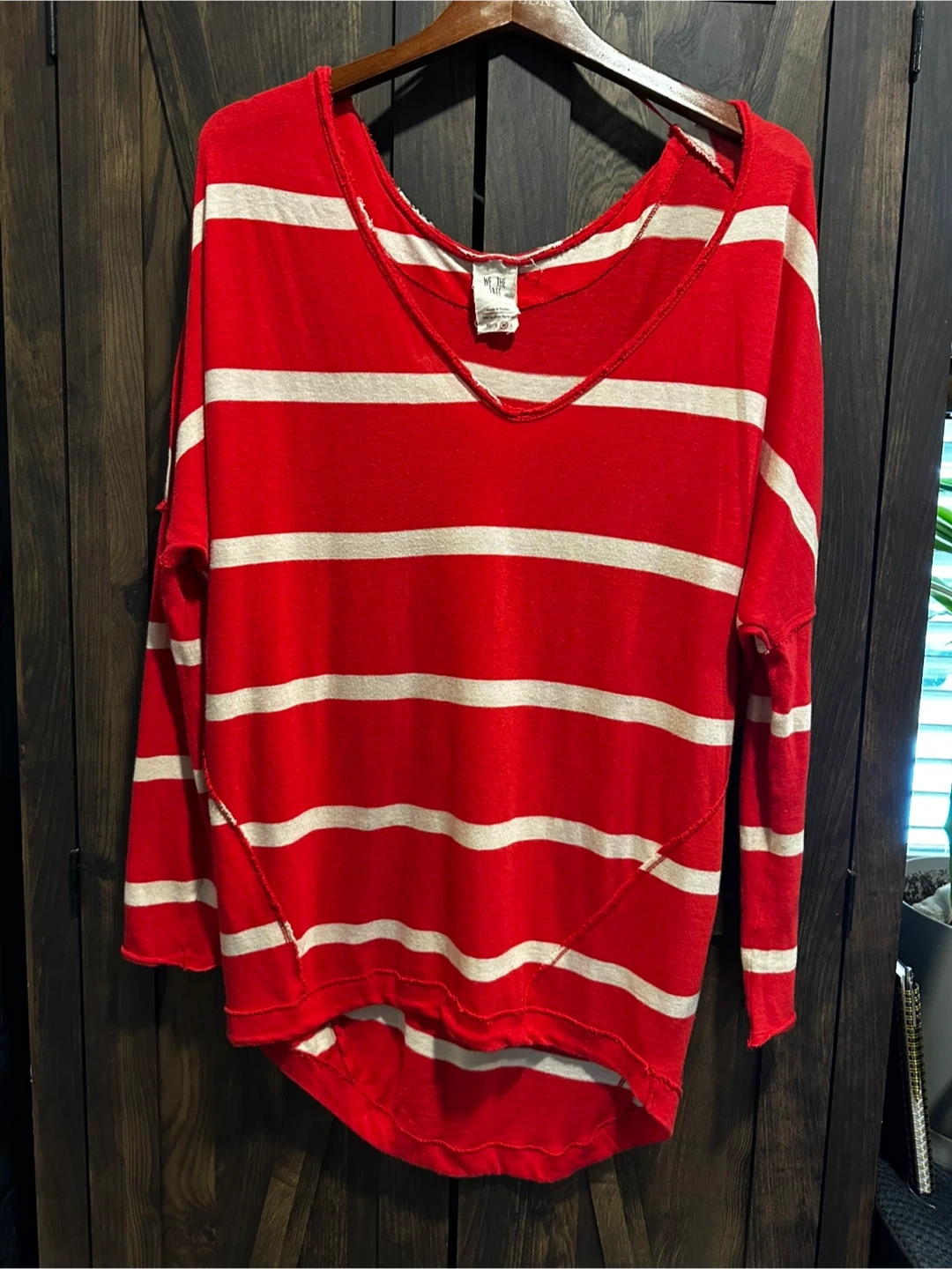 We The Free striped V-neck oversized long sleeve top.