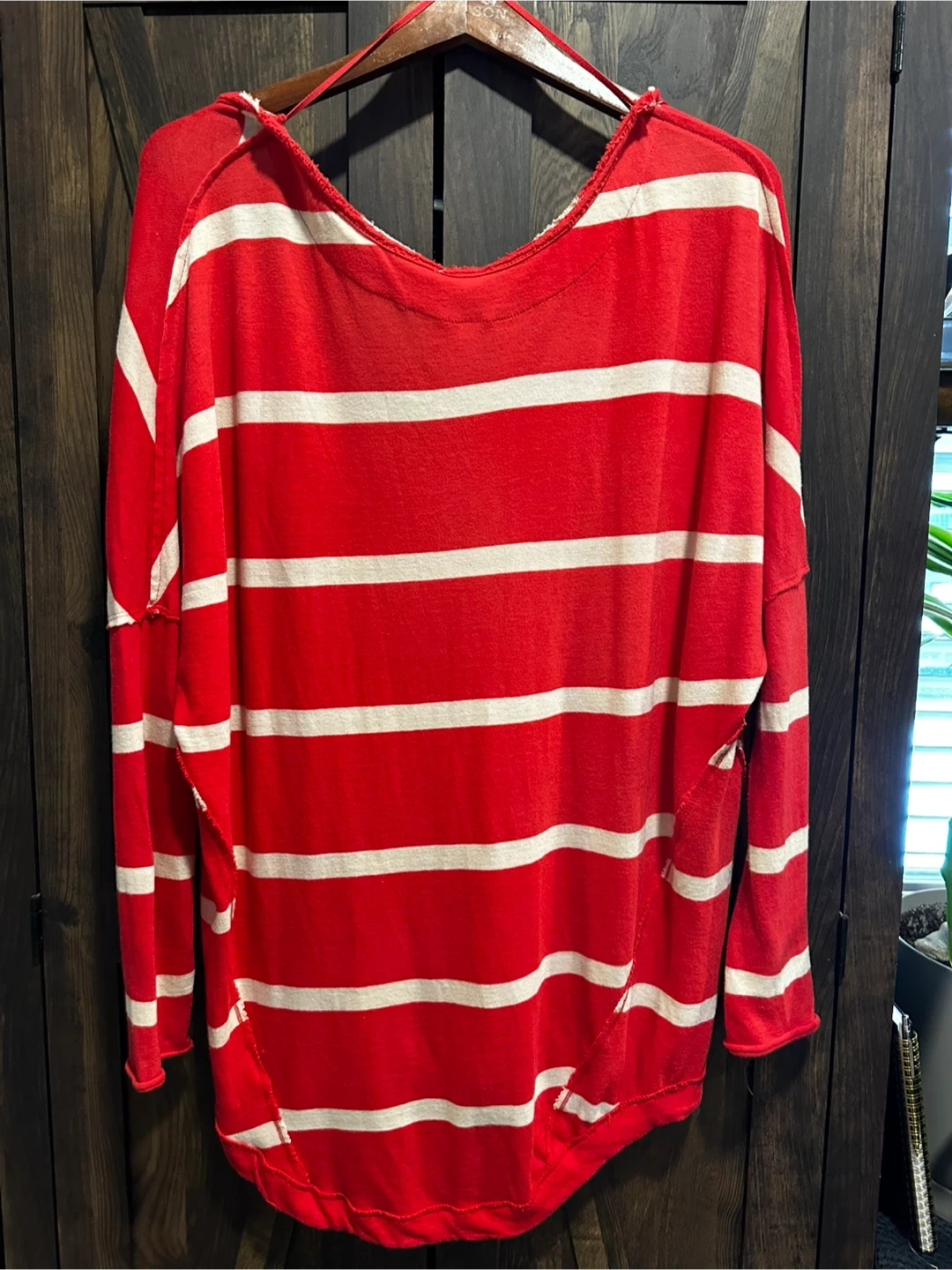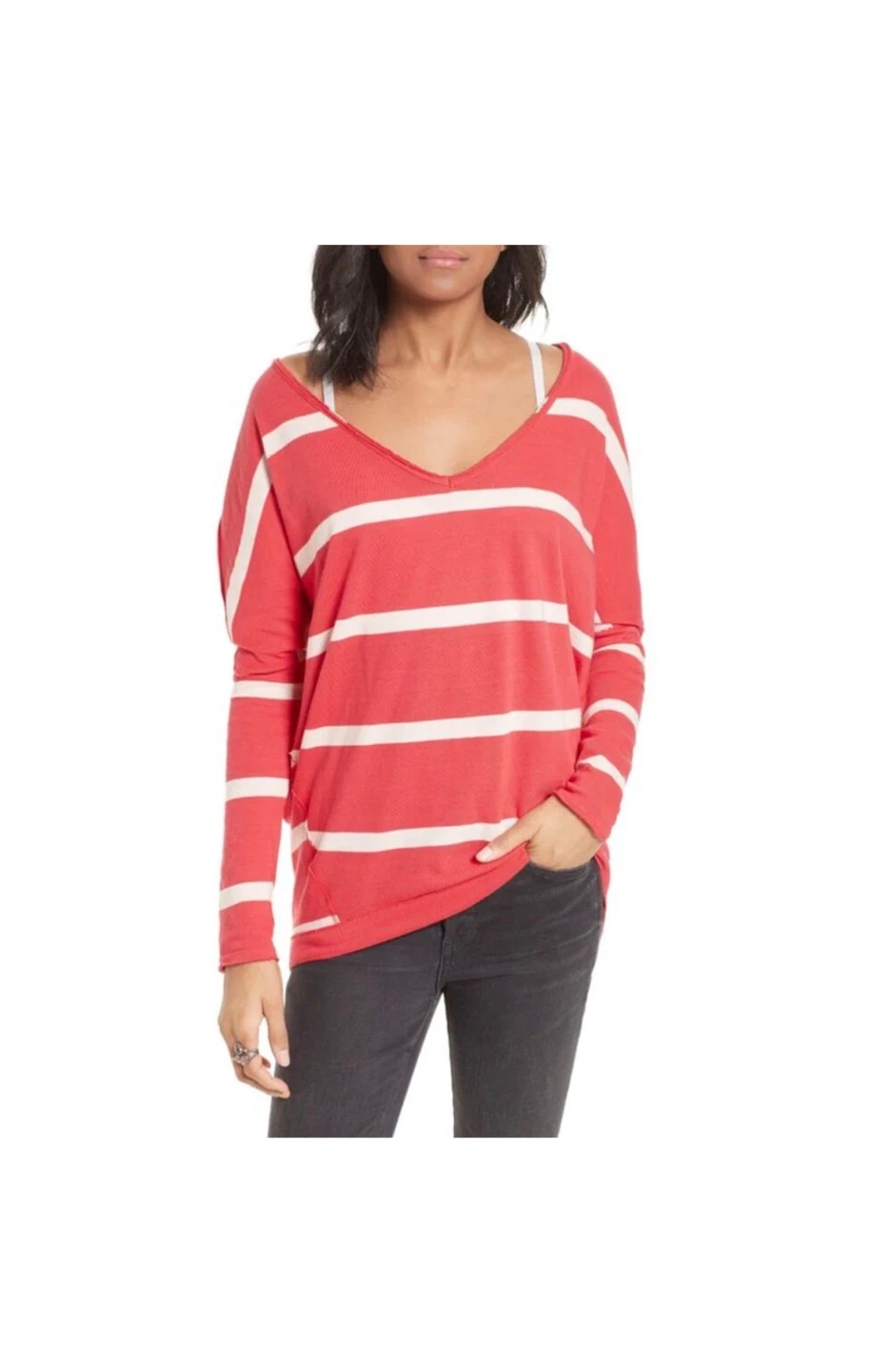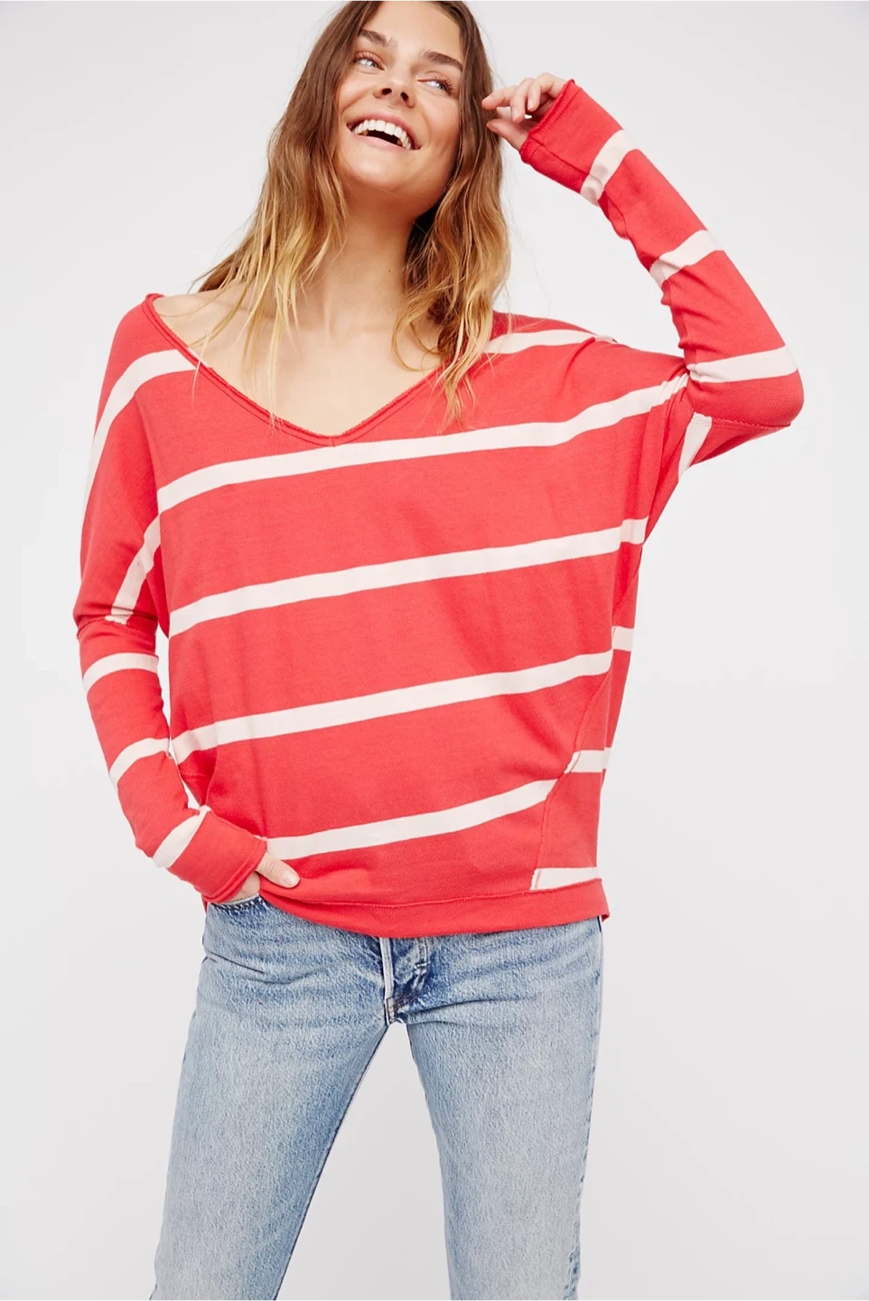 We The Free striped V-neck oversized long sleeve top.