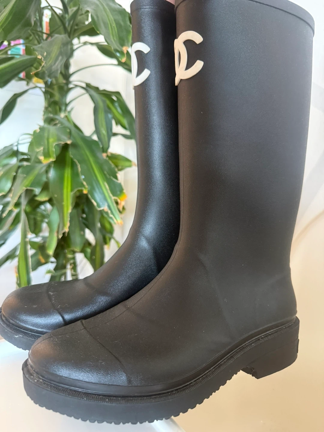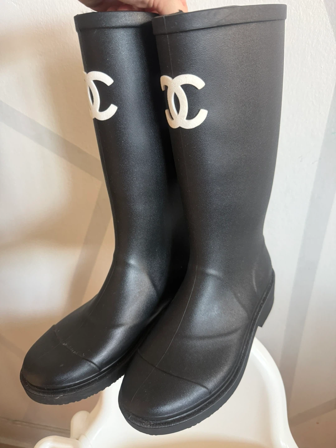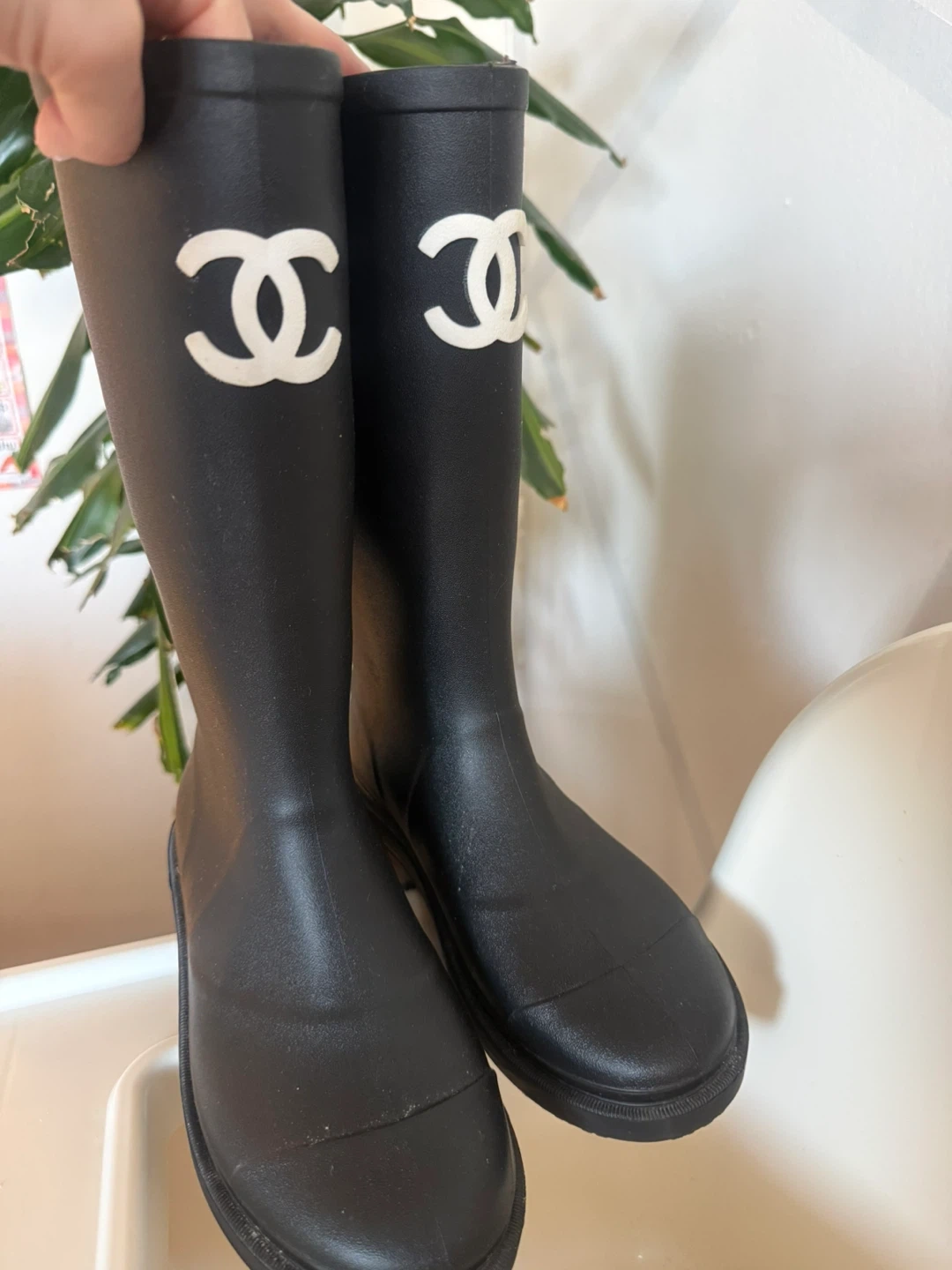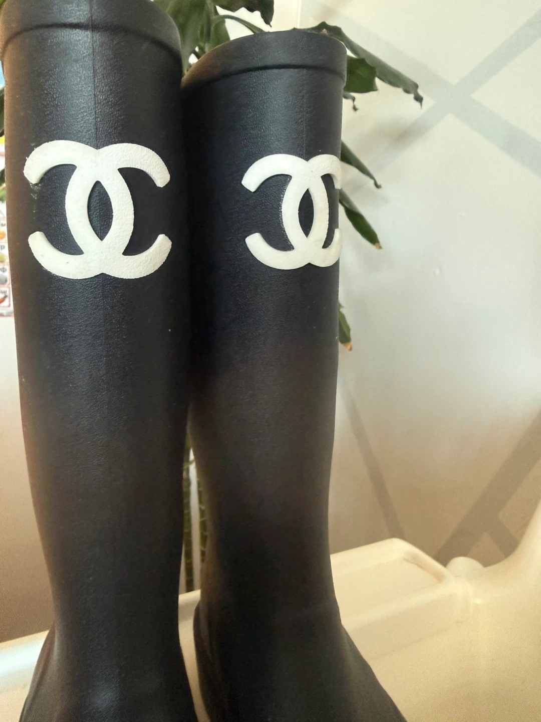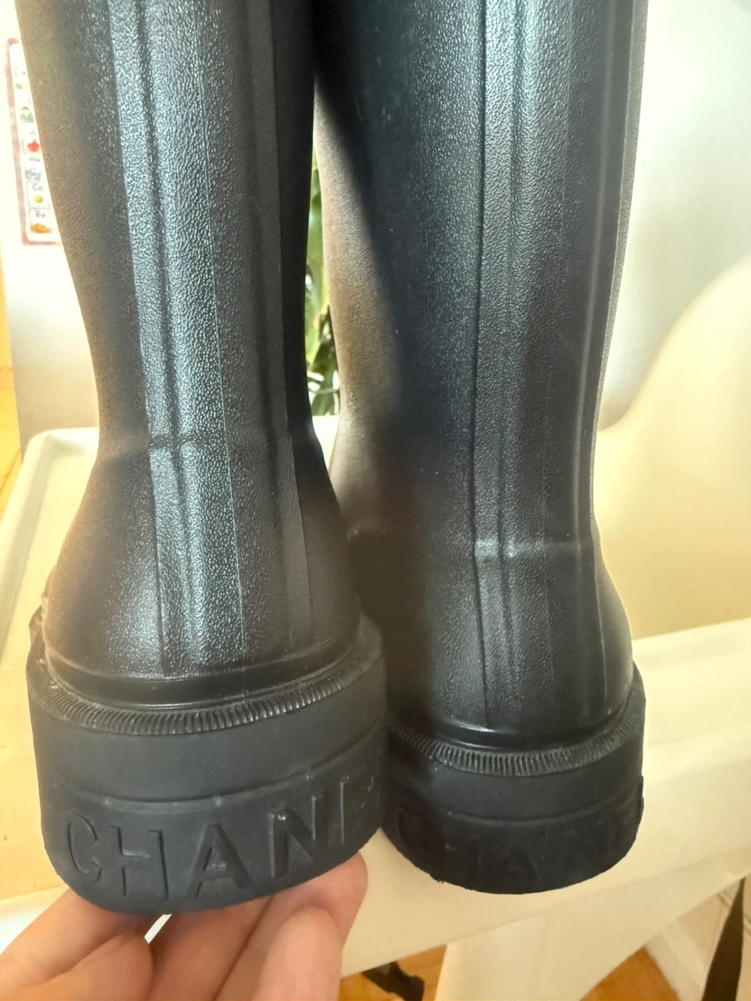Buy & SellChanel Black Rubber Tall Boots Size 38Chanel Black Rubber Tall Boots Size 38$299Black rubber tall boots with white Chanel logos. Made in France. Size 38.ConditionLike newSizeUs 8BrandChanelWHERE TO MEETIslington Junior Middle SchoolView MapSELLERSaraIslington1107 reviews2 chats·5 favorites·37 viewsSEND CHAT TO SELLERHi Sara! I’m interested in your listing.Hi Sara! I’m interested in your listing.Get the Karrot app to chatSign In to chat