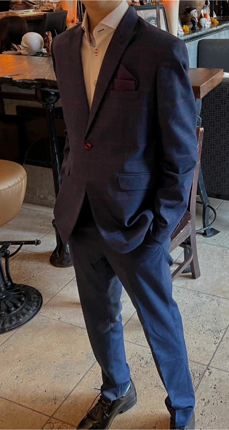 Men's Navy Blue Plaid Suit