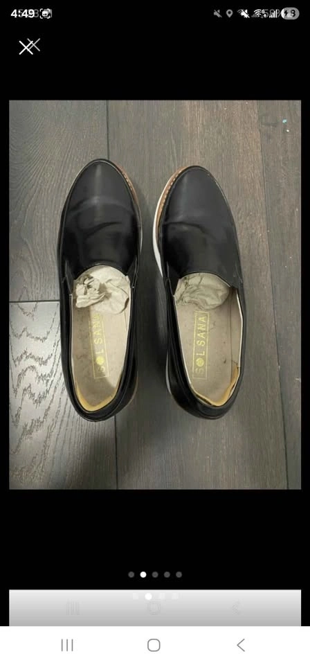 Black Patent leather platforms. Used a few times. I've added a Scholl foam sticker inside the heel for extra comfort, but it's removable. Feel free to reach out if you have any questions.