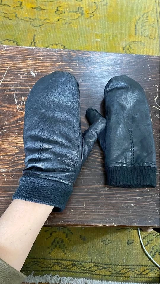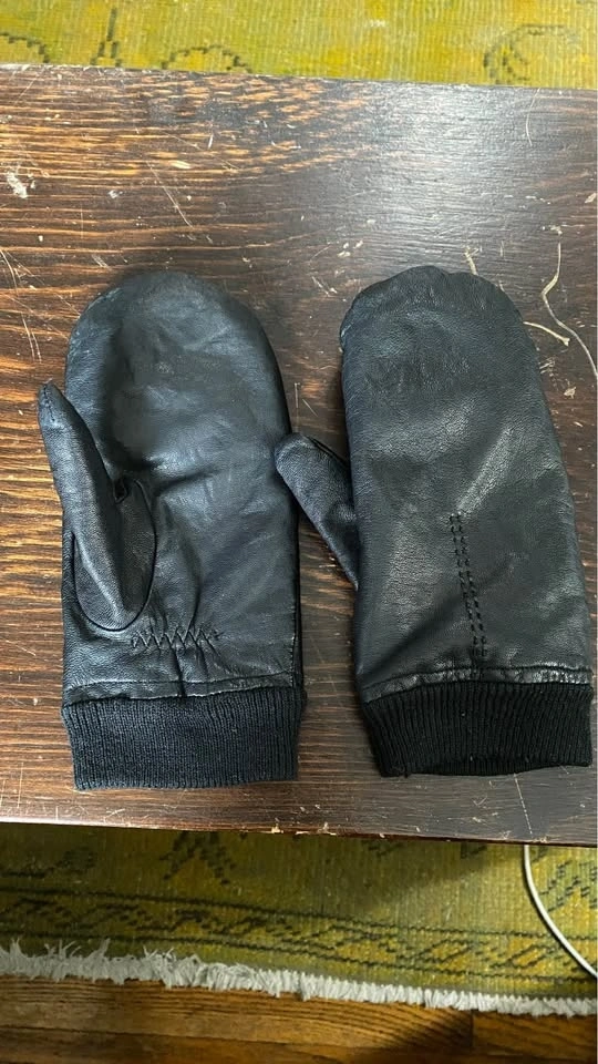 Black leather mitts. In good functioning condition with some minor signs of wear on leather and one hole on the knitted ribbed cuff. Women’s medium. Pickup only from DuPont and Spadina road. Can do porch pickup if you e-transfer in advance.
