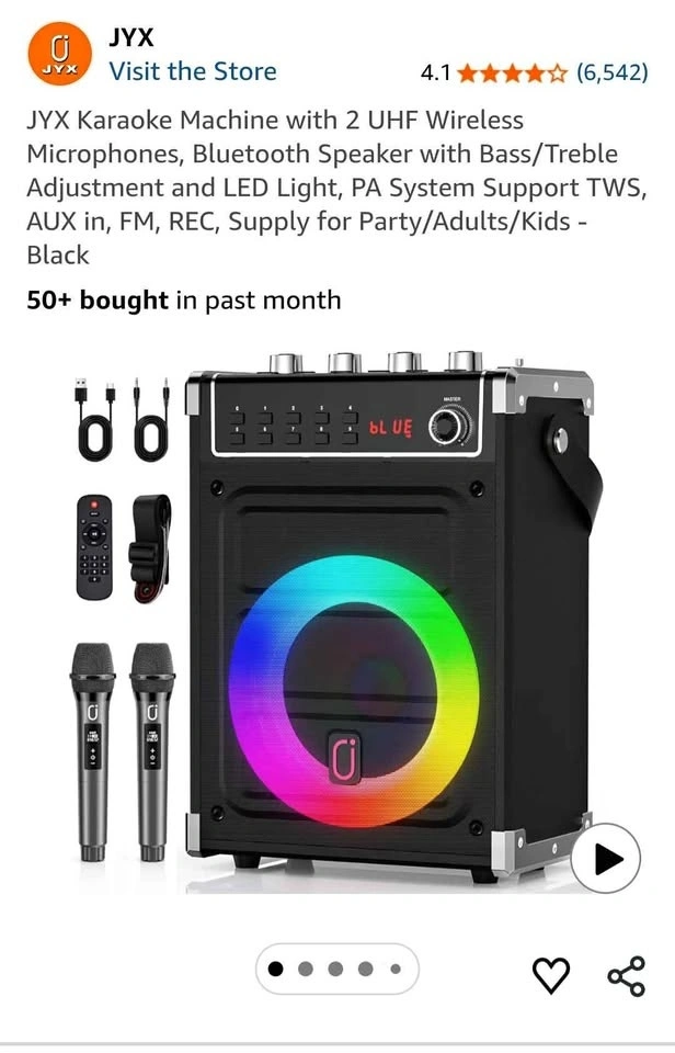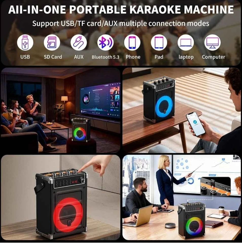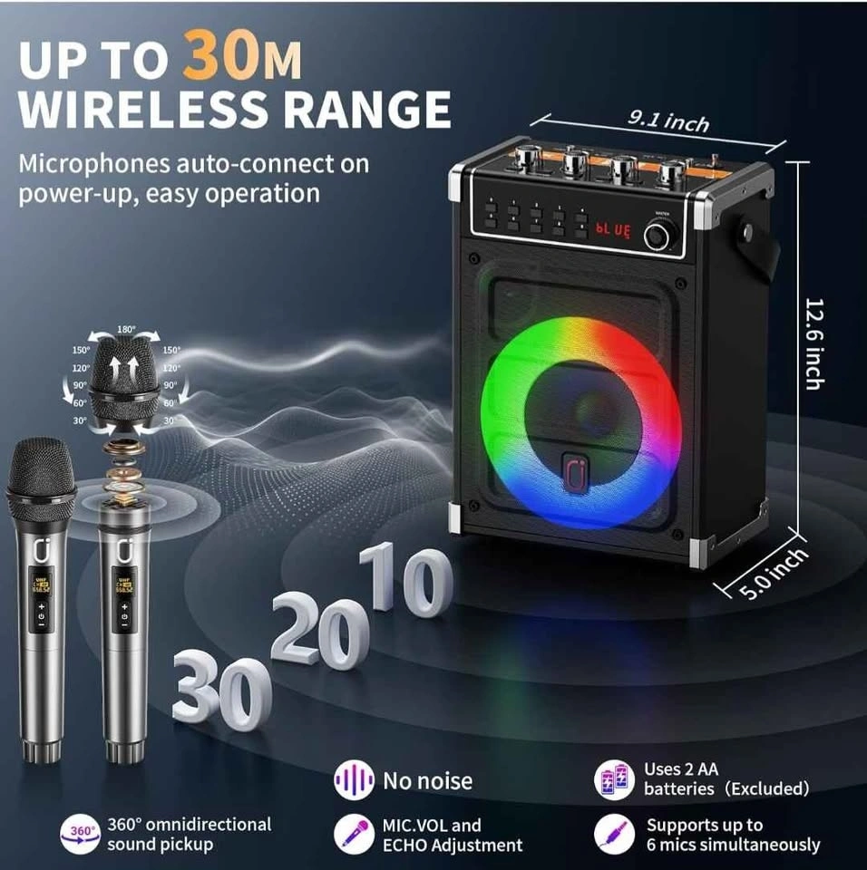 NEW-JYX Karaoke Machine with 2 Wireless Mics & Bluetooth Speaker