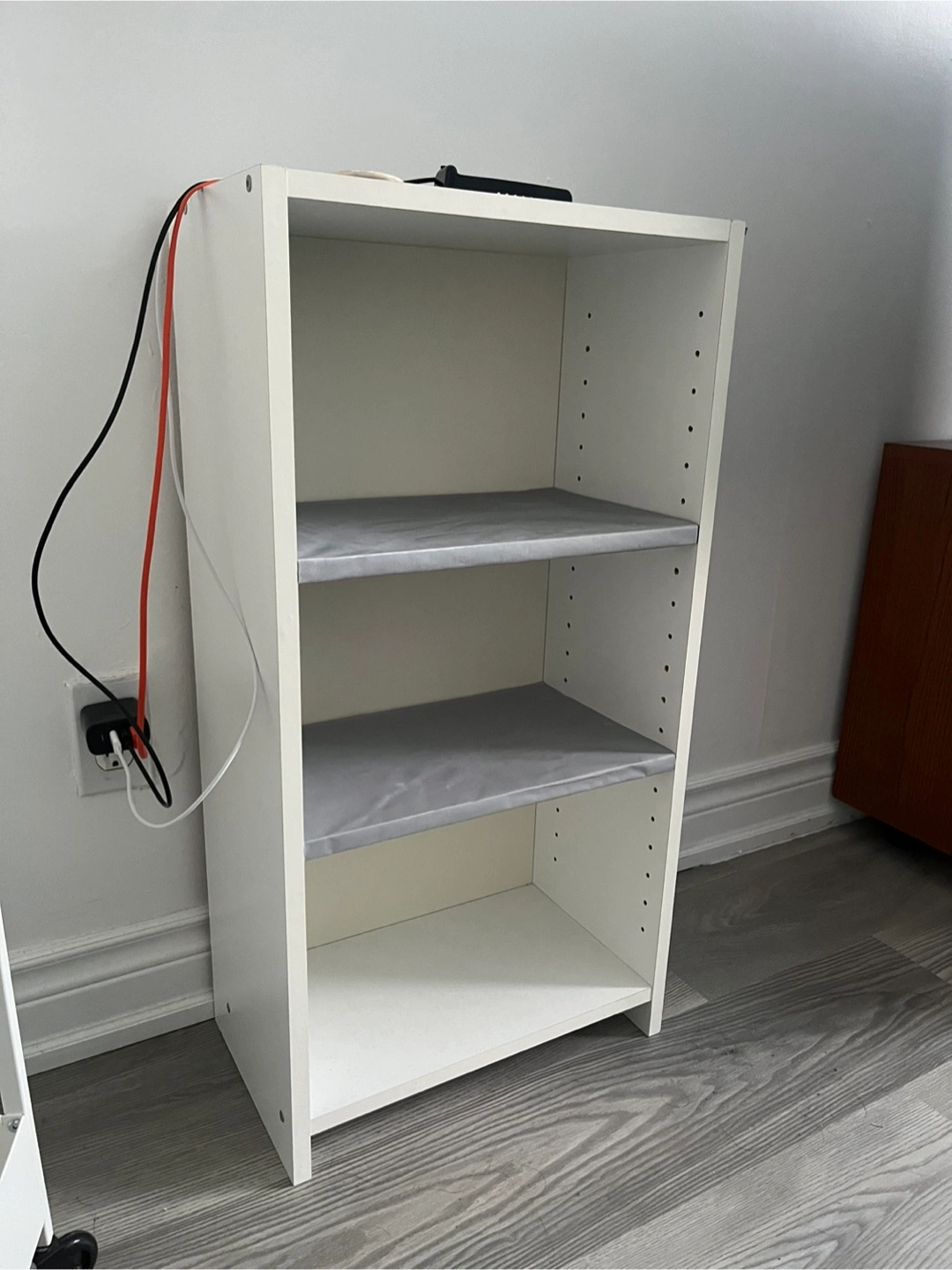 adjustable shelf heights and comes with two BLUE shelf liners.