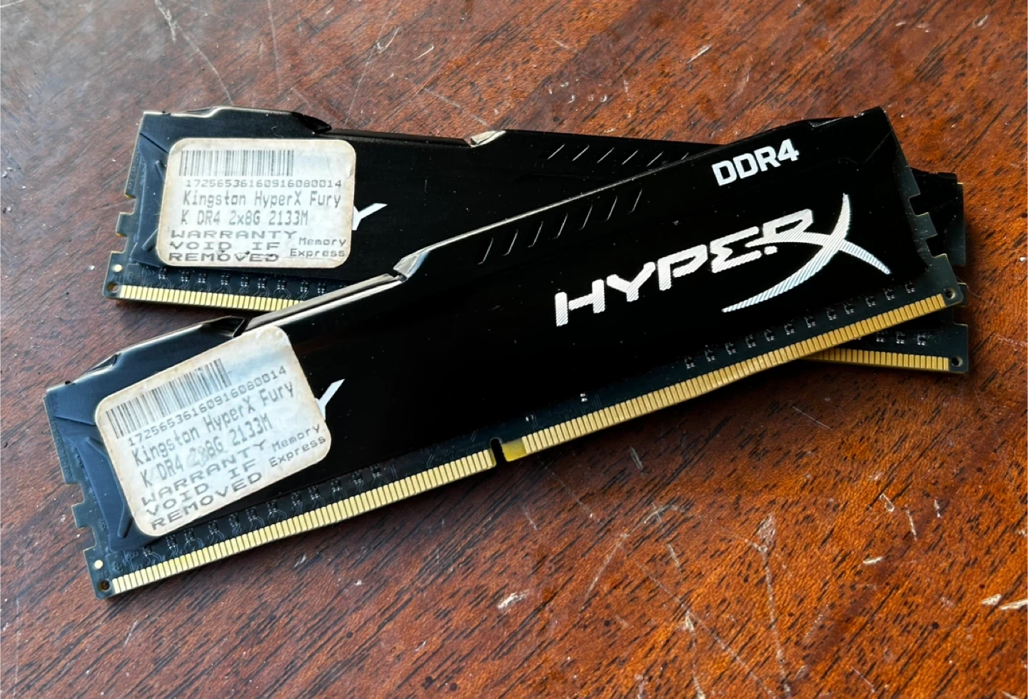 Two Kingston HyperX Fury DDR4 RAM sticks. Each is 8GB with a speed of 2133MHz. Great for upgrading your PC's performance! Looking for 60.00 these are still online for over 120.