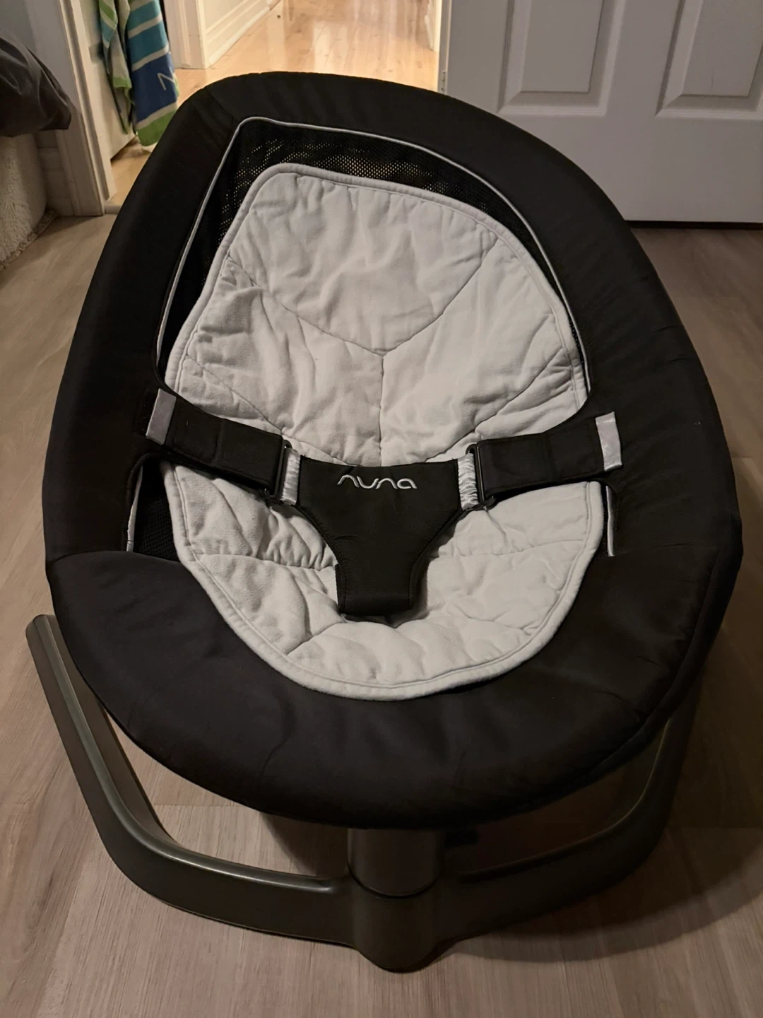 Selling a Nuna Leaf baby swing in black and grey. It's in great condition and perfect for keeping your little one comfortable and entertained.
