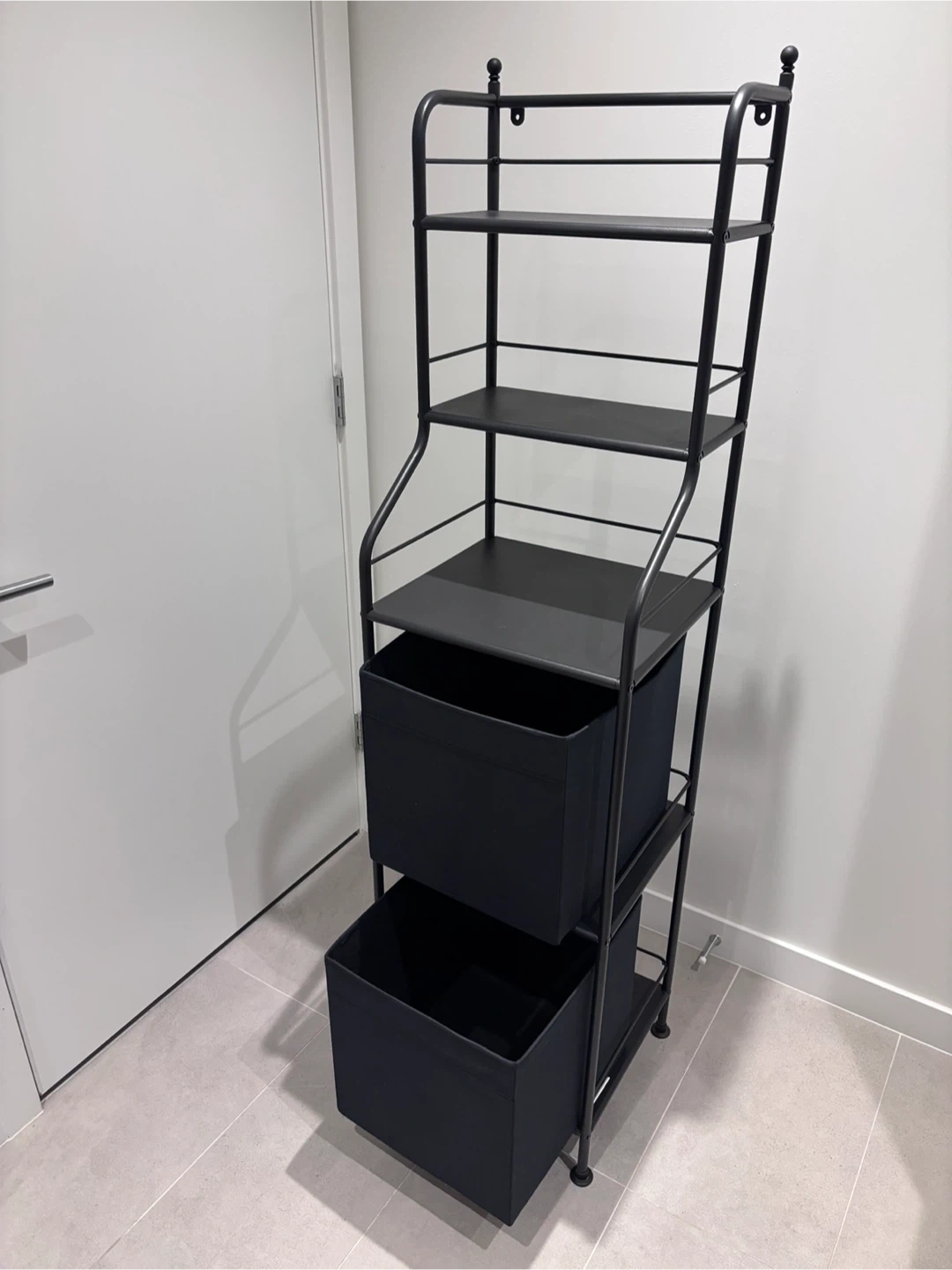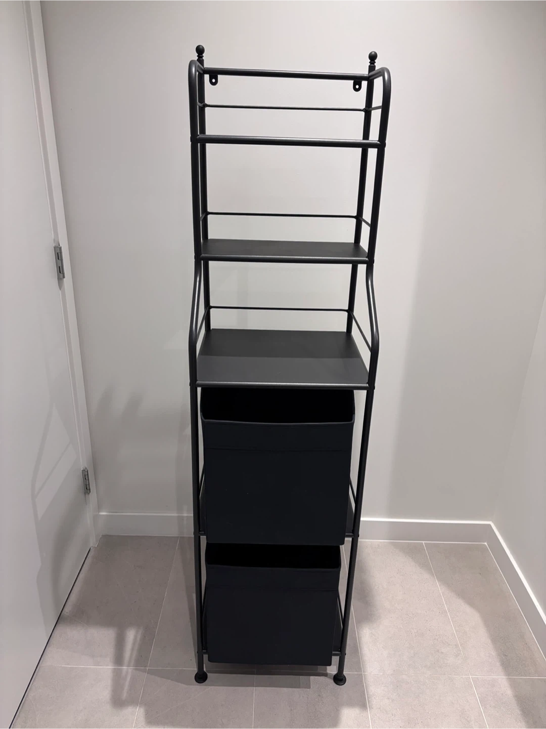 Buy & SellBlack Metal Shelf Unit with Storage BinsBlack Metal Shelf Unit with Storage Bins$50Black metal shelving unit with multiple shelves and two fabric storage bins. It's 156 cm tall with a width of 37 cm and depth of 40 cm.ConditionLike newWHERE TO MEETV3L 0L4View MapSELLERverifiedMariaBraid Station973 reviews0 chats·0 favorites·5 viewsSEND CHAT TO SELLERHi Maria! I’m interested in your listing.Hi Maria! I’m interested in your listing.Get the Karrot app to chatSign In to chat