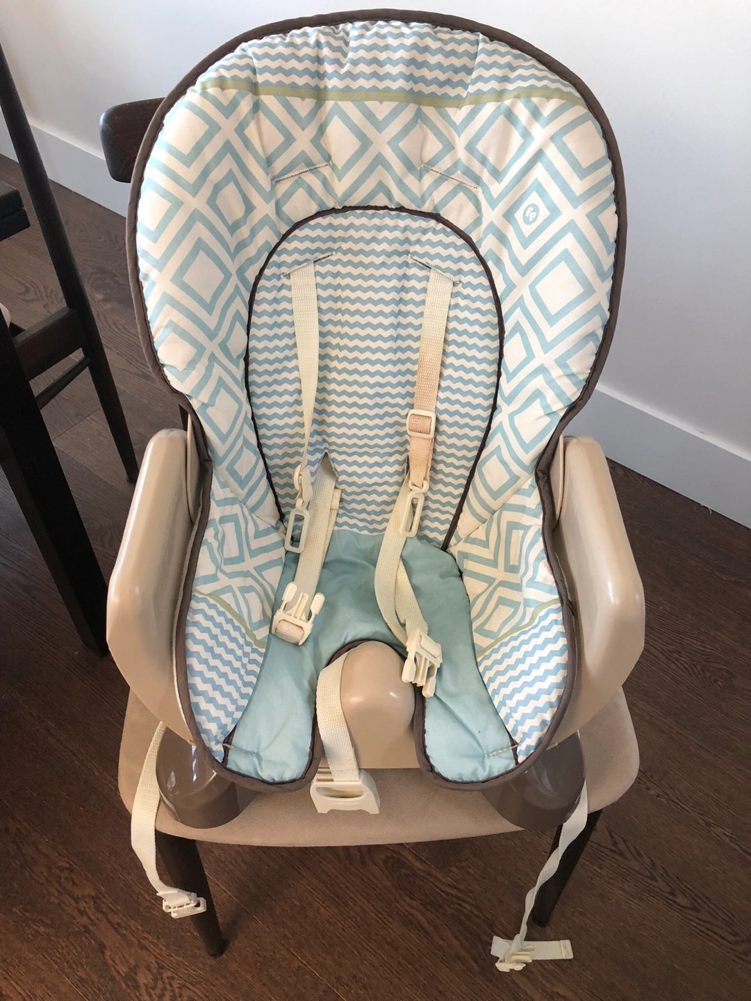 Willing to share with another a lighted loved booster chair! Perfect for small spaces or grandmas house! Straps to a chair or sits on the floor for easy use and storage. Removable seat cover for cleaning. Pick up please.