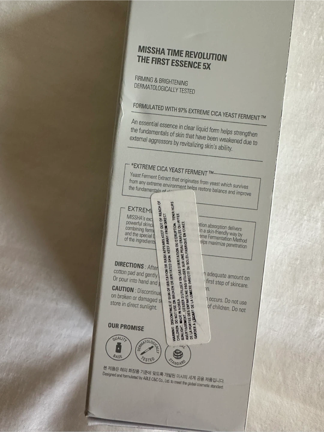 New in box MISSHA Time Revolution The First Essence 5X, formulated with 97% extreme cica yeast ferment.
