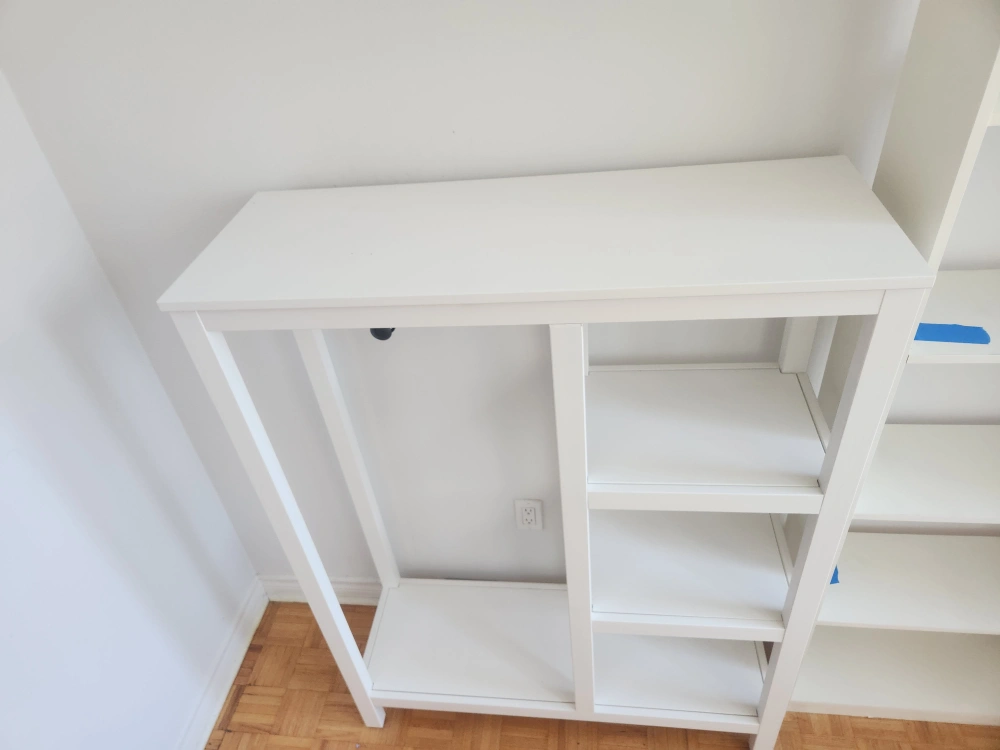 Discontinued ikea storage shelf with hanging bar, 3 shelves. nicer detailing that most ikea furniture.