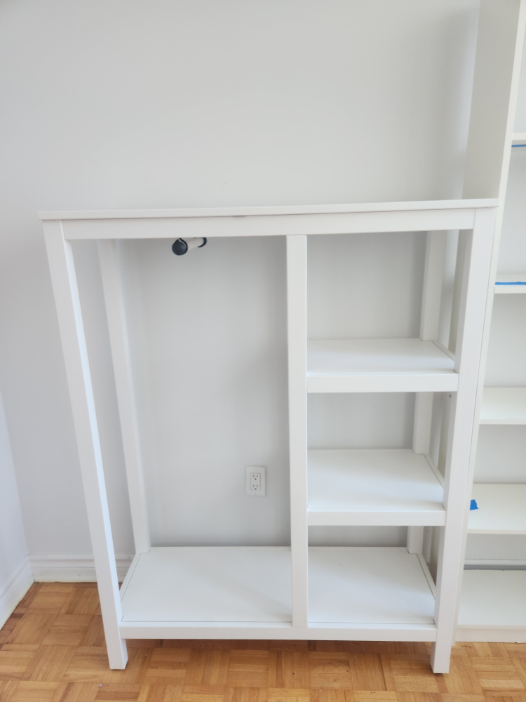 Discontinued ikea storage shelf with hanging bar, 3 shelves. nicer detailing that most ikea furniture.