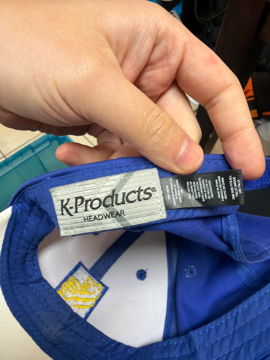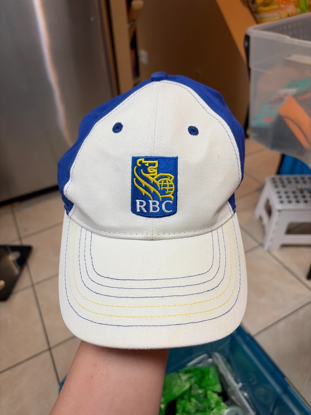 Selling a K-Products Headwear baseball cap with the RBC logo. It's a white cap with blue accents. This cap is made of 100% cotton!
