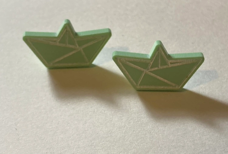 These earrings feature a green paper boat design. They are a fun and stylish addition to any outfit.