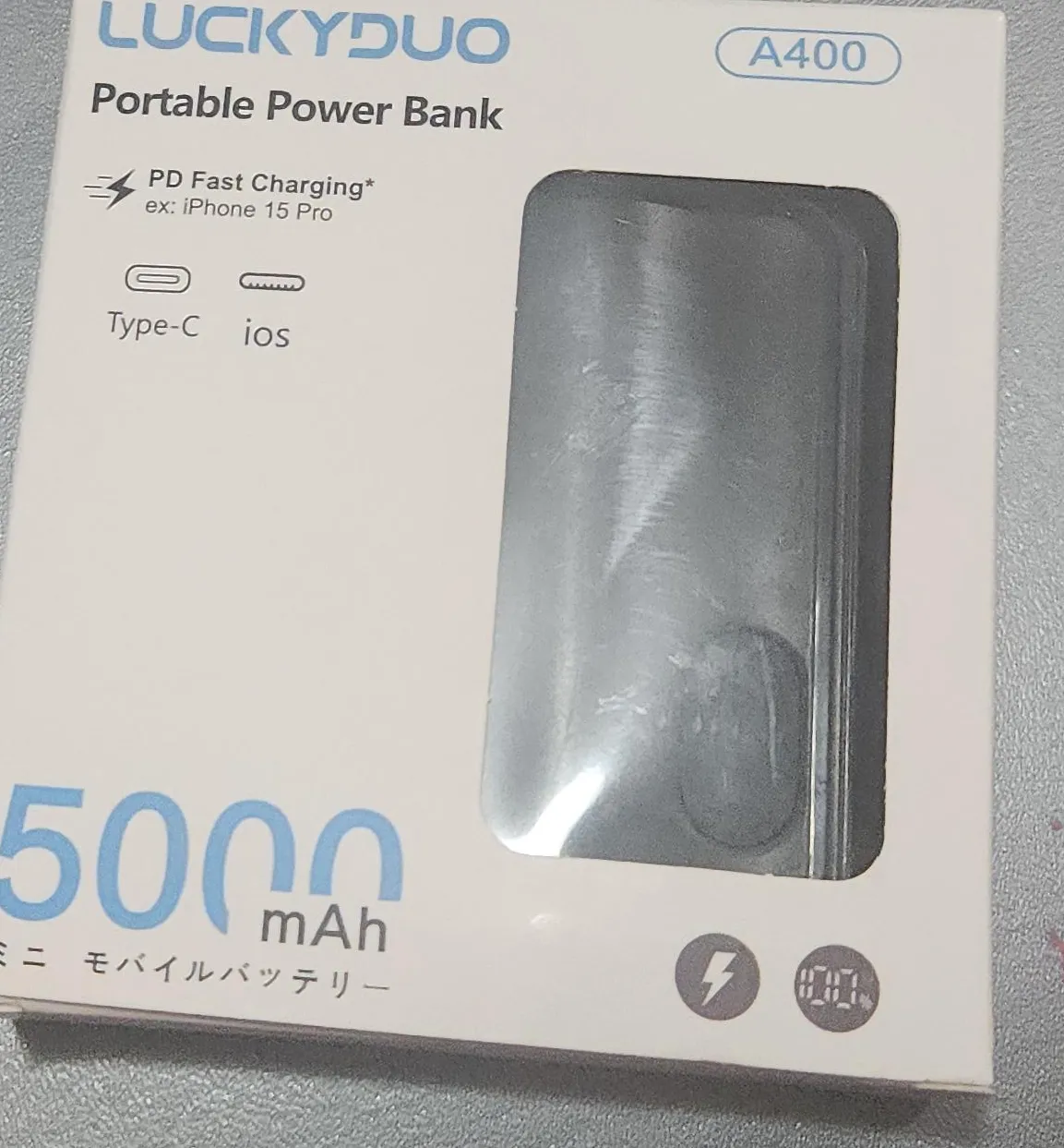 Selling a brand new LUCKYDUO A400 portable power bank! It features PD Fast Charging and is compatible with Type-C and iOS devices. It has a 5000mAh capacity and is still in its original packaging no msging after 7 pm please