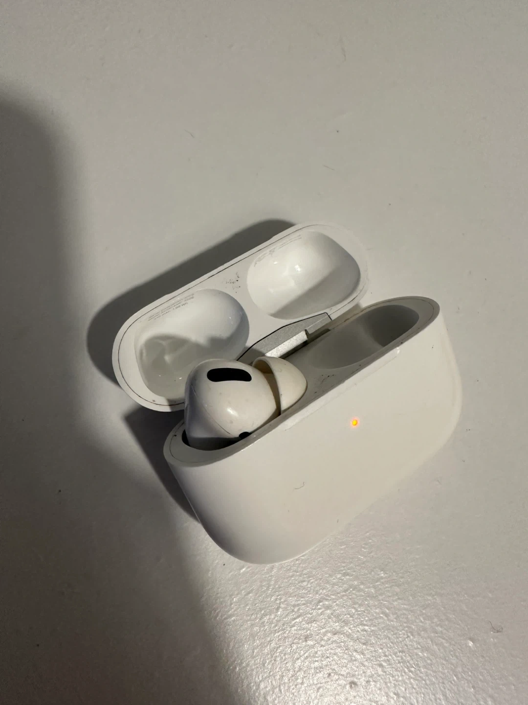 Selling a pair of used Apple Airpods Pro. There’s only one AirPod left and has difficulty connecting, may need repair. The case itself is fully functional for charging.