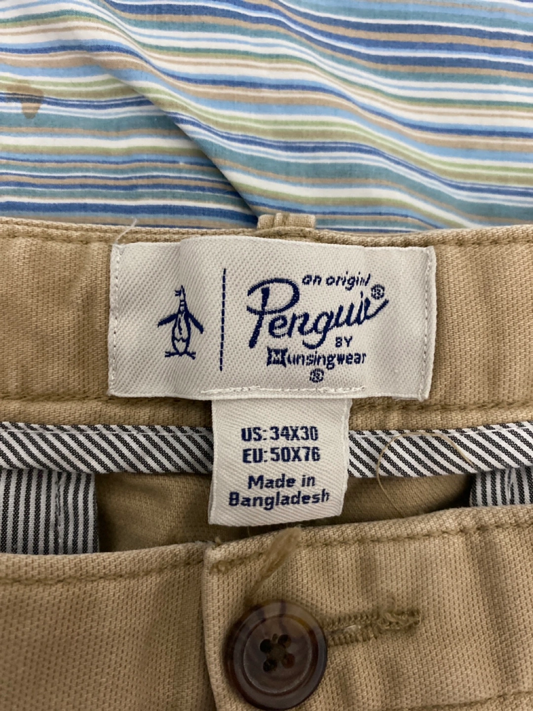 Selling a pair of Penguin brand khaki pants. They are size 34x30 and made in Bangladesh. These are in great condition and ready for a new home!