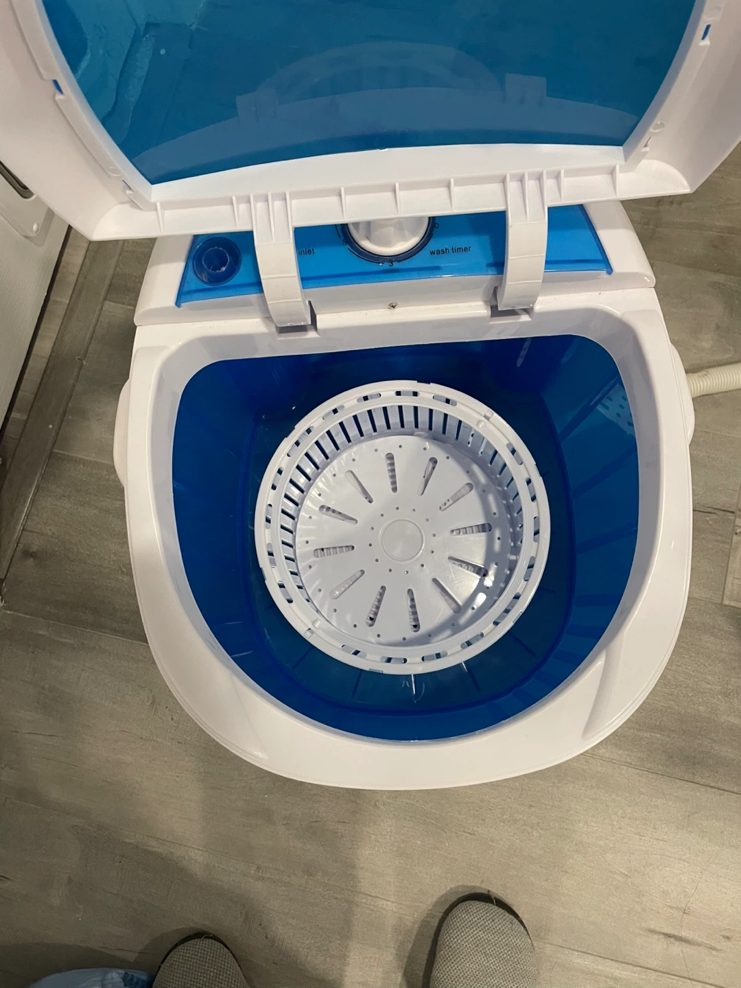 Compact portable washing machine with separate spin timer and wash timer functions. It's great for small loads or delicates. This machine is ideal for apartments or travel!