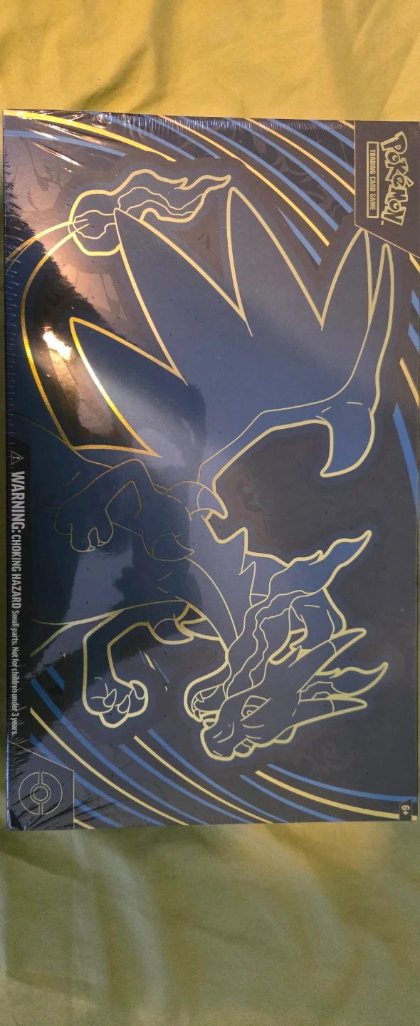 This is the Pokemon Mega Charizard EX Ultra-Premium Collection Box. It's sealed and contains trading cards. Includes a Mega Charizard EX jumbo card, a Mega Charizard X foil card, and other cards.