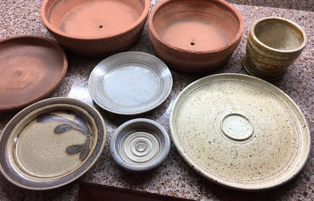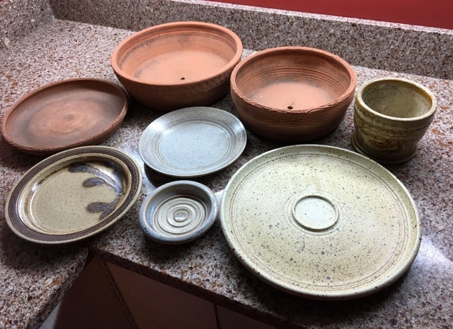Several pieces of local vintage pottery including a serving platter, decorative plates, and plant pots. Excellent condition. Let me know if you're interested!