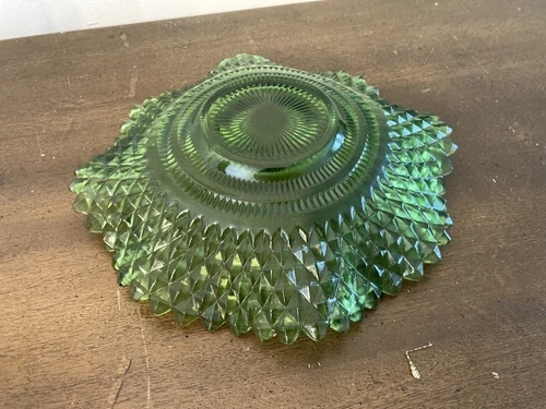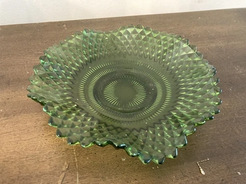 Green Carnival Glass Plate Diamond Point Ruffle Indiana Glass 10