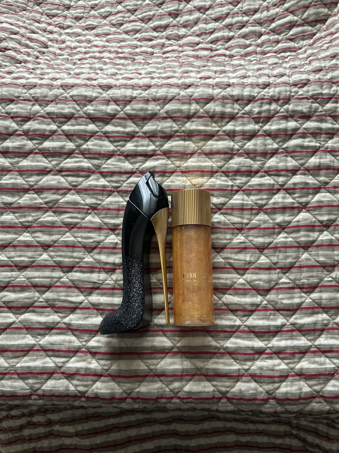 The “leg elixir” is essentially just a hydrating body oil, leaving behind a slight shimmer. Smells slightly different from the perfume as it’s made to pair with the original Good Girl but they still smell great together!
