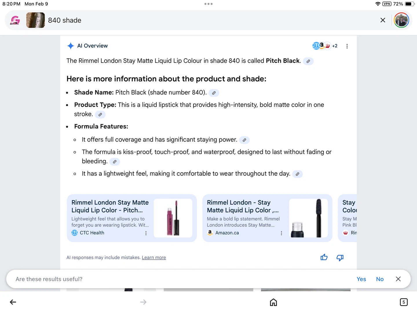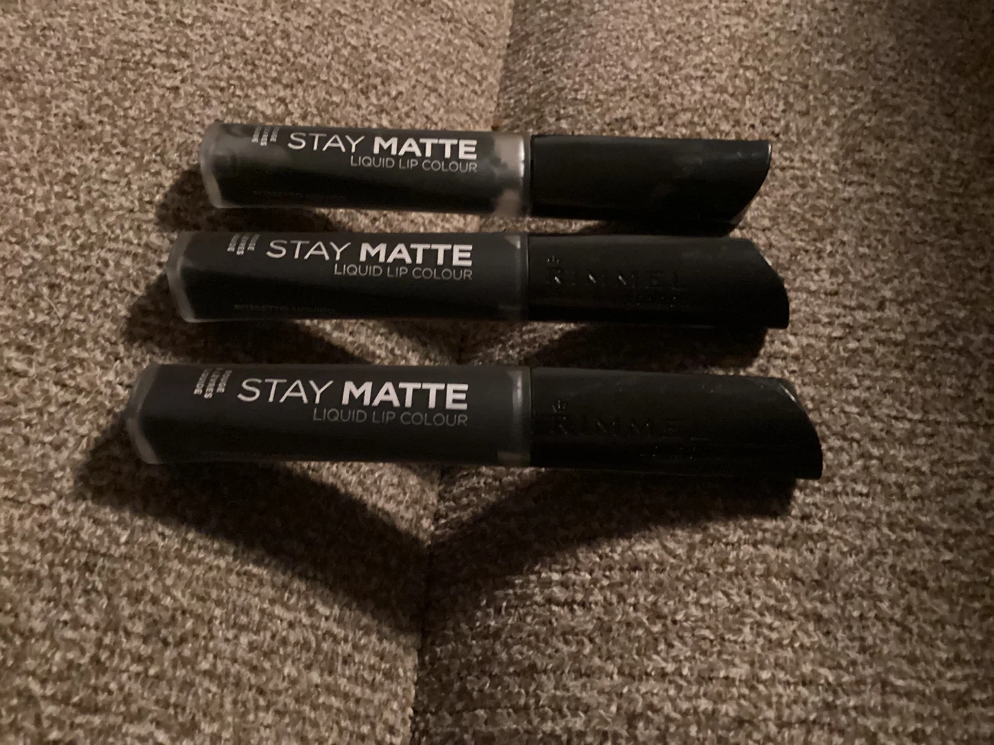 Rimmel London Stay Matte Liquid Lip Colours in shade 840, Pitch Black. This is a liquid lipstick that provides high-intensity, bold colour. It offers full coverage and has significant staying power. $3 each Great addition to anyone’s makeup collection.